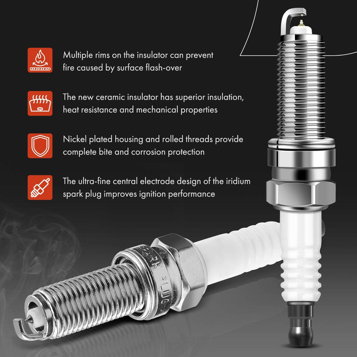 Q: What is the installation process for the ignition coil pack and spark plugs?A: Installation of the A-Premium Ignition Coil Pack and Iridium Spark Plugs typically involves removing the engine cover, disconnecting the old ignition coils, and replacing them with the new ones. It's recommended to consult a professional mechanic if you're not familiar with engine components for proper installation.