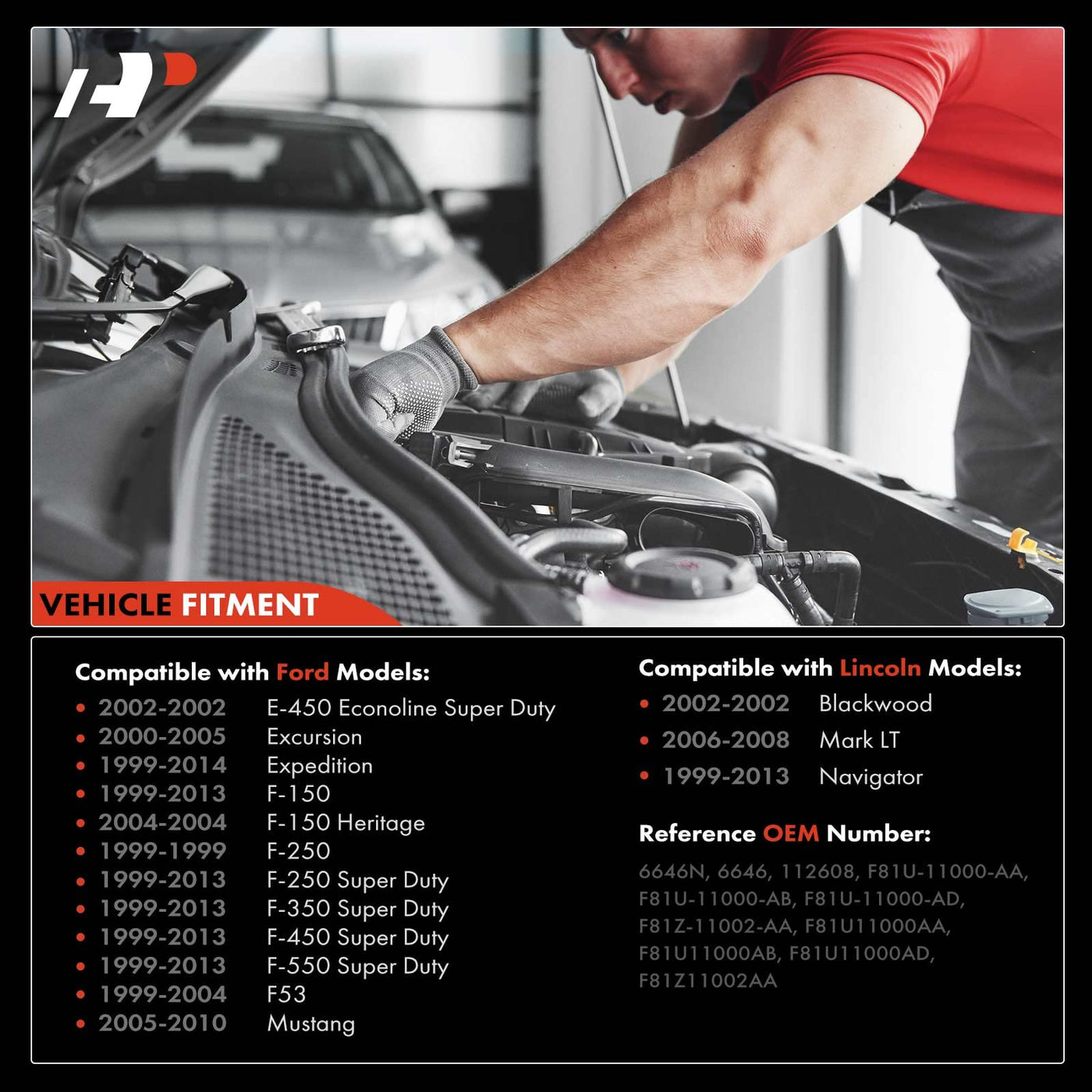 Compatible With Ford Models: Excursion 2000-2005 V8 5.4L/V10 6.8L Expedition 1999-2004 V8 4.6L Expedition 1999-2014 V8 5.4L Fit For F-150 1999-2010 V8 4.6L/V8 5.4L Fit For F-150 2011-2013 V8 5.0L To 11/15/2012 Fit For F-150 2010-2013/Fit For F-250 Super Duty 2012-2013 Fit For F-350 Super Duty 2011-2013 V8 6.2L To 11/15/2012 Fit For F-150 Heritage 2004 V8 4.6L/V8 5.4L Fit For F-250 1999 V8 4.6L/V8 5.4L Fit For F-250 Super Duty/Fit For F-350 Super Duty 1999-2008 V8 5.4L Fit For F-250 Super Duty/Fit For F-350 Super Duty 2009 V8 5.4L Without Nose Cone Fit For F-250 Super Duty 2011 V8 6.2L Fit For F-250 Super Duty/Fit For F-350 Super Duty 1999-2008/2010 V10 6.8L Fit For F-250 Super Duty/Fit For F-350 Super Duty 2009 V10 6.8L Without Nose Cone F-450 Super Duty 1999-2013/F-550 Super Duty 2010-2013/F53 2011-2013 V10 6.8L To 11/15/2012 E-450 Econoline Super Duty 2002 V10 6.8L F-550 Super Duty 1999-2005/2007-2008 V10 6.8L F-550 Super Duty 2009 V10 6.8L Fits Without Nose Cone, Early Or Without Nose Cone, Late F-550 Super Duty 2006 V10 6.8L Opt. Starter/Std. Starter F53 1999-2004/2006-2009 V10 6.8L Fit For Mustang 2005-2010 V8 4.6L