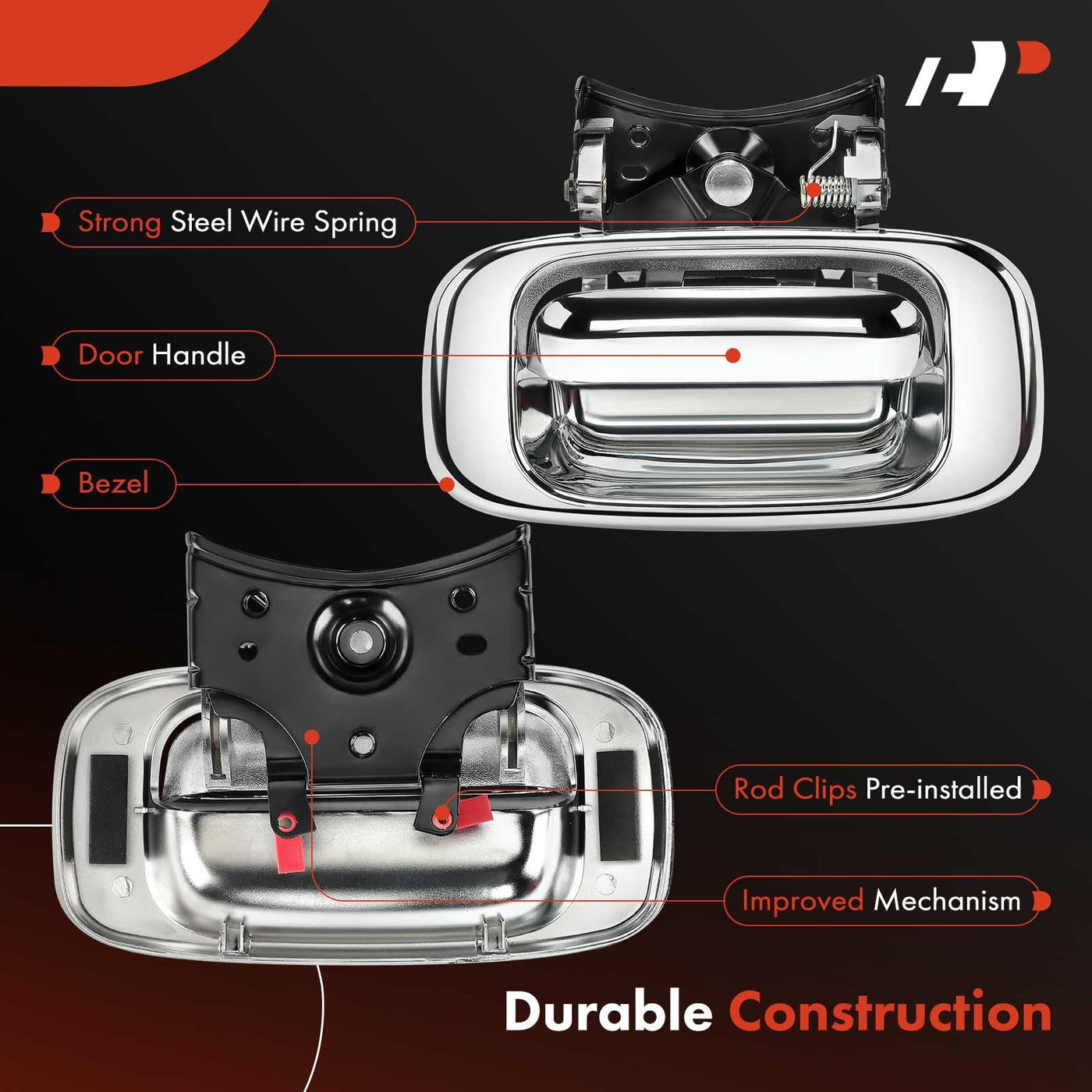 A-Premium - Tailgate Handle & Bezel Assembly - Compatible with 1999-2007 Chevy Silverado GMC Sierra 1500 2500 3500 - Chrome Fini