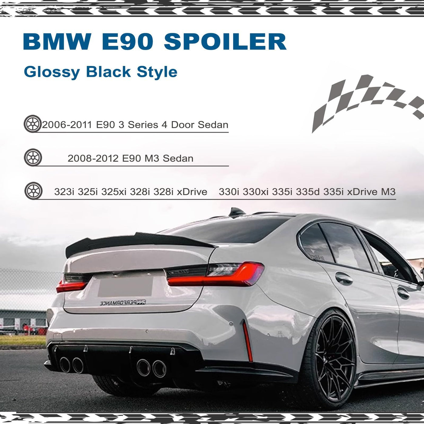 AAriguthel Rear Spoiler Wing Compatible with 2006-2011 BMW E90 3 Series Sedan & 2008-2012 E90 M3 Sedan - M4 Style Trunk Lip for