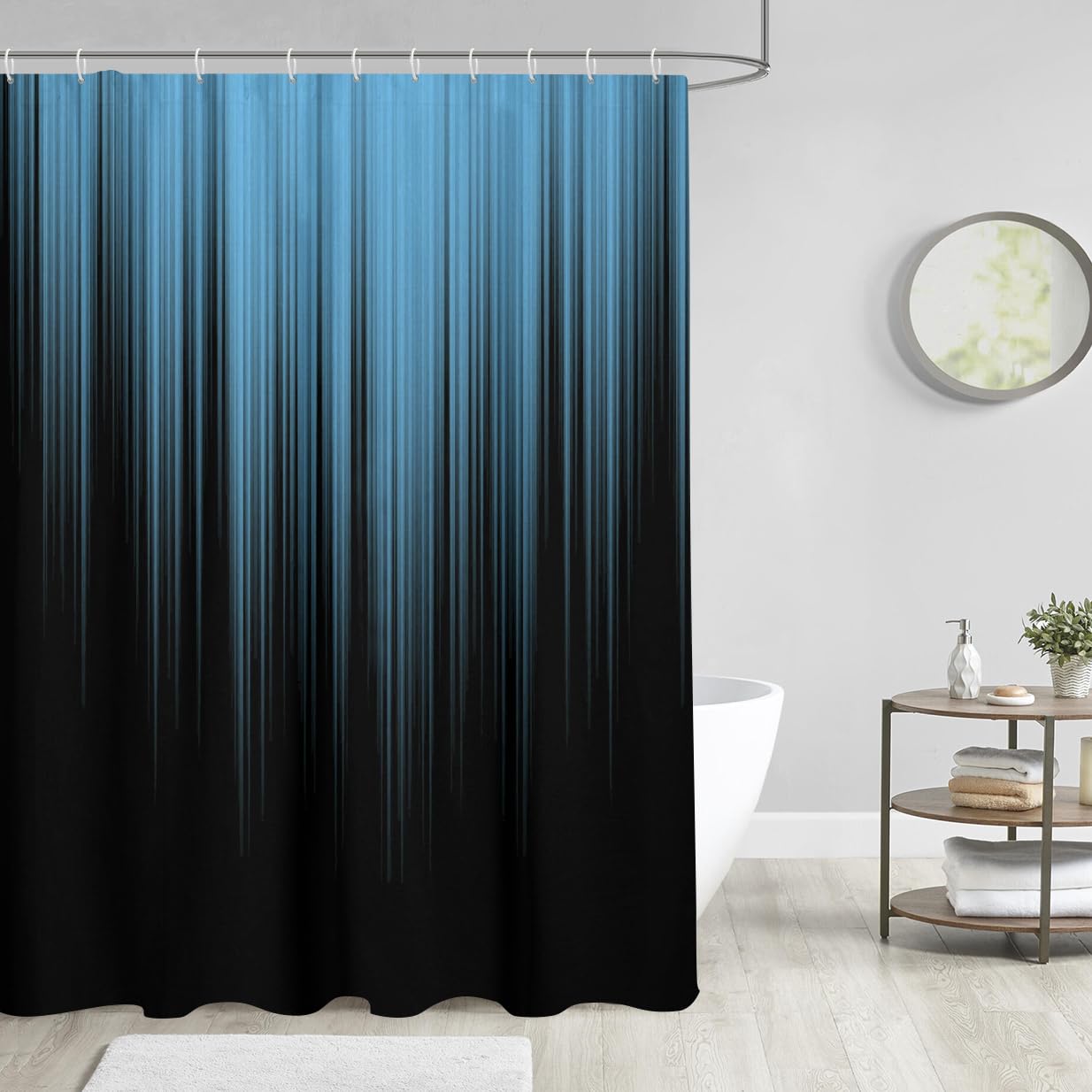 Aatter Blue And Black Shower Curtain Ombre Abstract Striped Mens Boys Royal Boho Farmhouse Dark Minimalist Cute Unique Cool Art Aesthetic Home Bathroom Decor Bathtub Set With 12 Hooks, 60X72, Modern