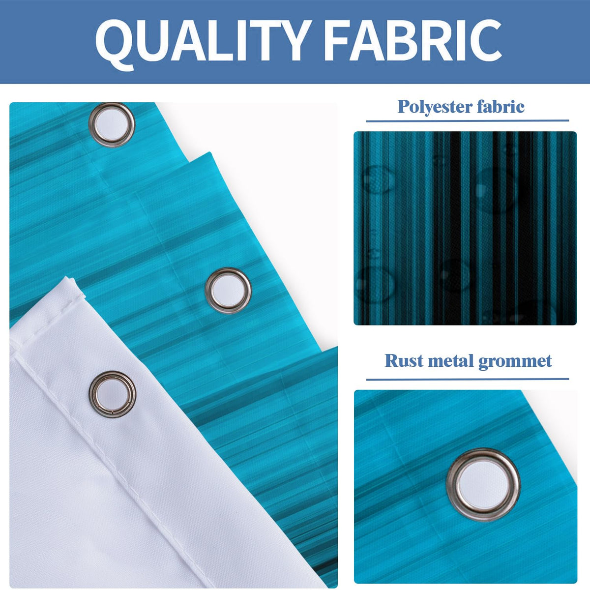 Q: What material is the shower curtain made from?A: The shower curtain is crafted from 100% polyester fabric, which is environmentally friendly and free from harmful odors, ensuring a safe choice for your family.