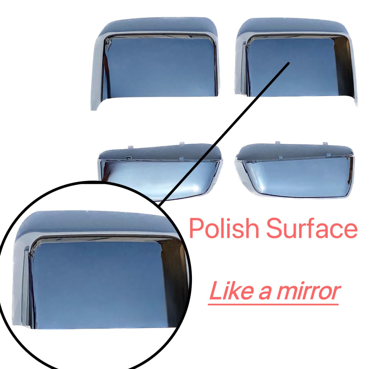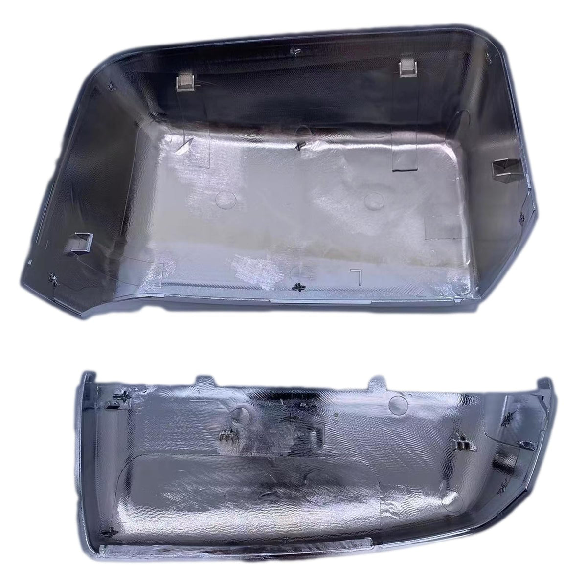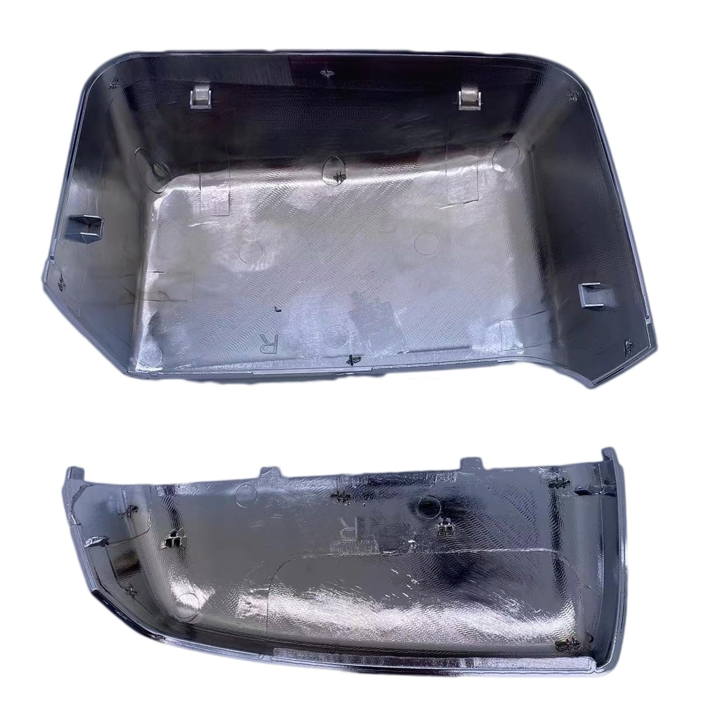 Q: What material are the towing mirror cover caps made from?A: The towing mirror cover caps are made from high-quality Acrylonitrile Butadiene Styrene (ABS) plastic, ensuring durability and a smooth, solid surface that enhances the appearance of your vehicle.
