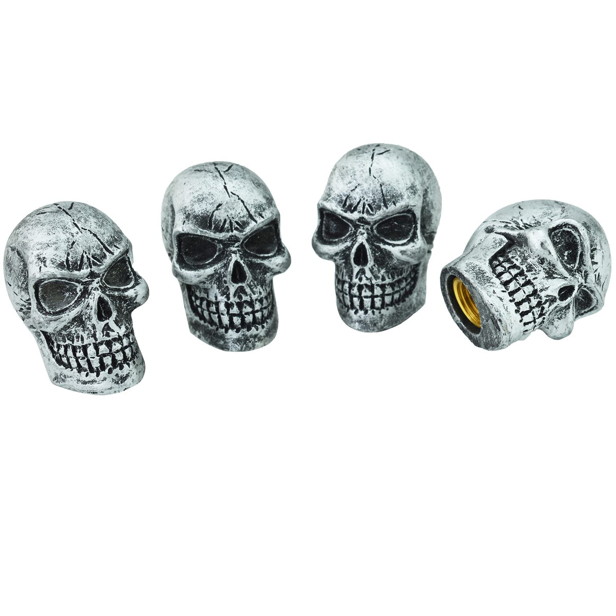 Abfer Skull Tire Wheel Air Cap Valve Stem Covers Car Decorative Accessories Fit Most Vehicle Truck Motorcycles Bikes (Silver)