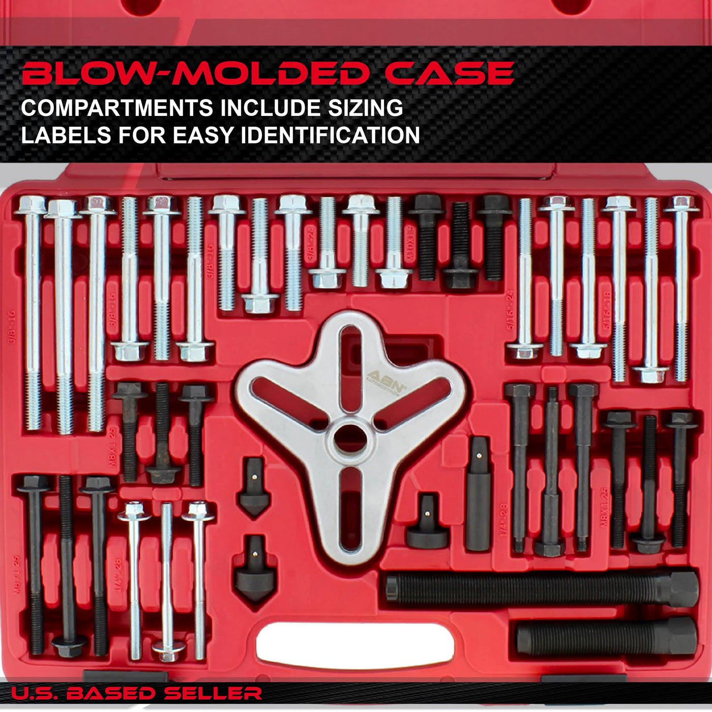 Q: What bolt sizes does the ABN Bolt Grip Set accommodate?A: The set accommodates various bolt sizes including M8x1.25x90mm, M8x1.25x45mm, 1/4-28UNFx3” inches, and several others, making it suitable for multiple applications.