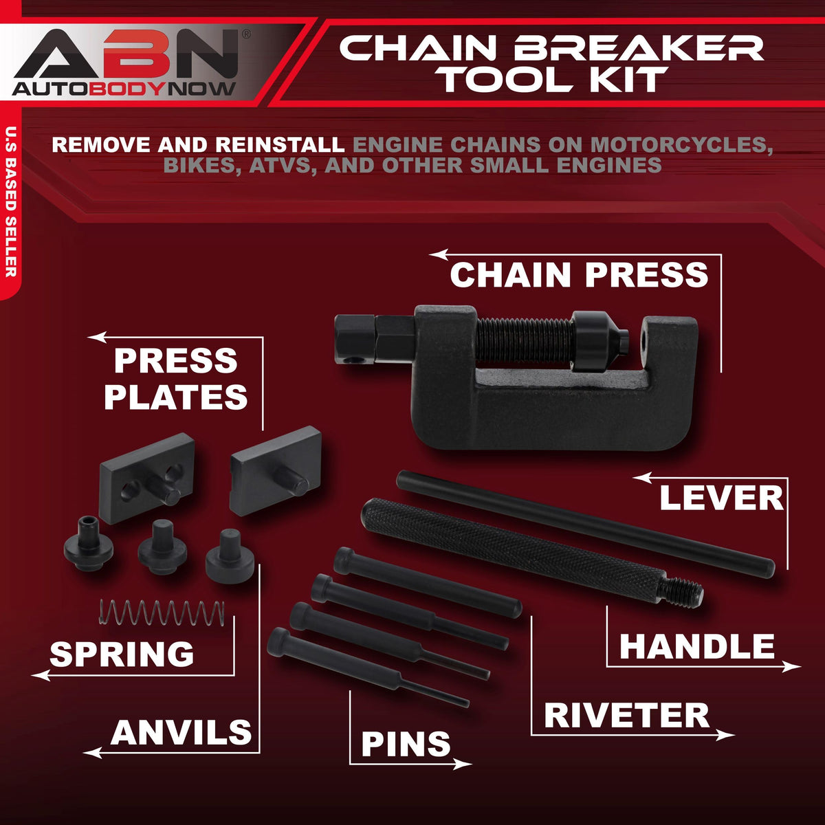 Practical Applications: The ABN Bike Chain Breaker Set includes all necessary tools for removing and reinstalling engine chains on motorcycles, bikes, ATVs, and small engines.