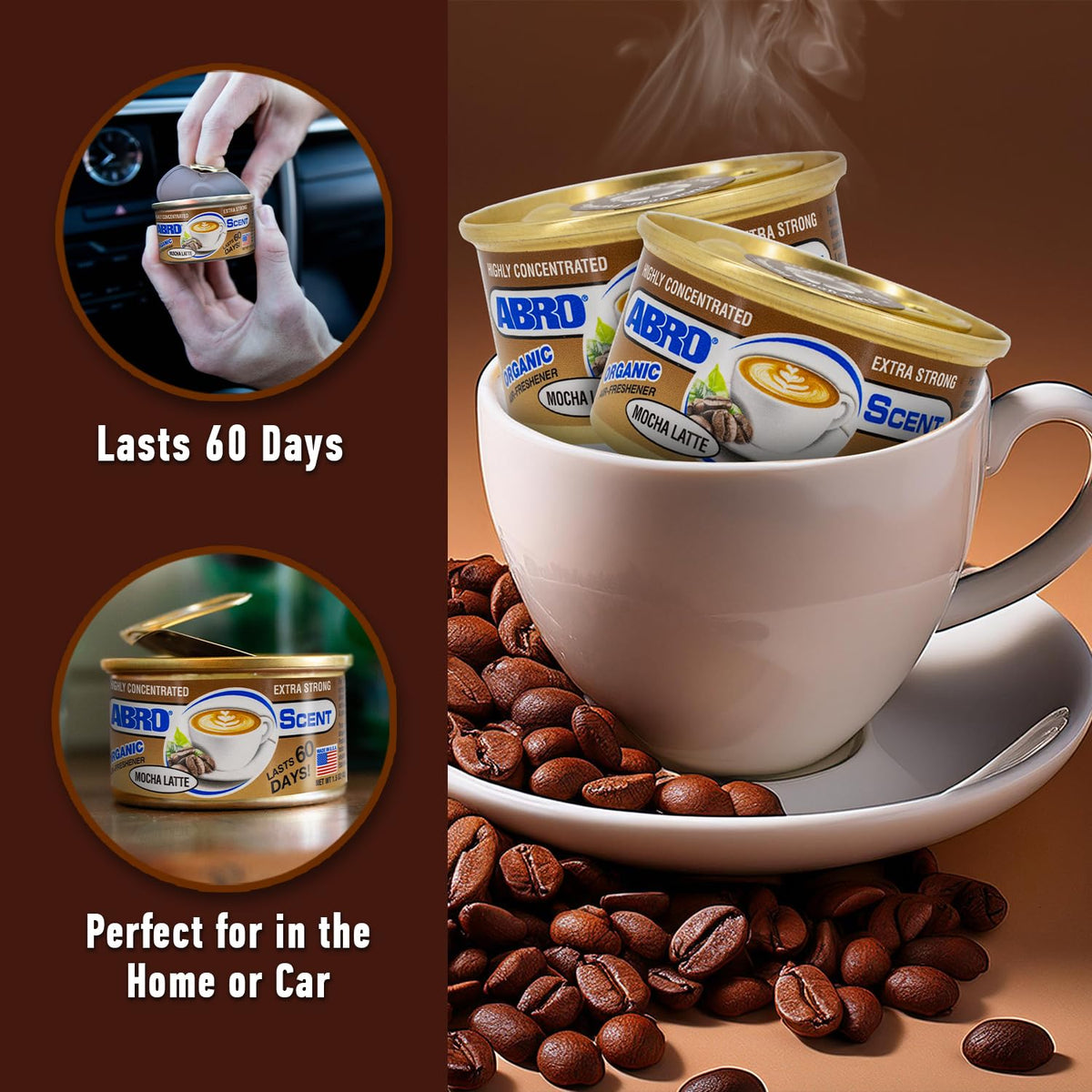 Abro Car Air Freshener Cans: Spill Proof Air Fresheners For Home, Office, Or Car Accessories, Lasts Up To 60 Days - 3 Pack Mocha