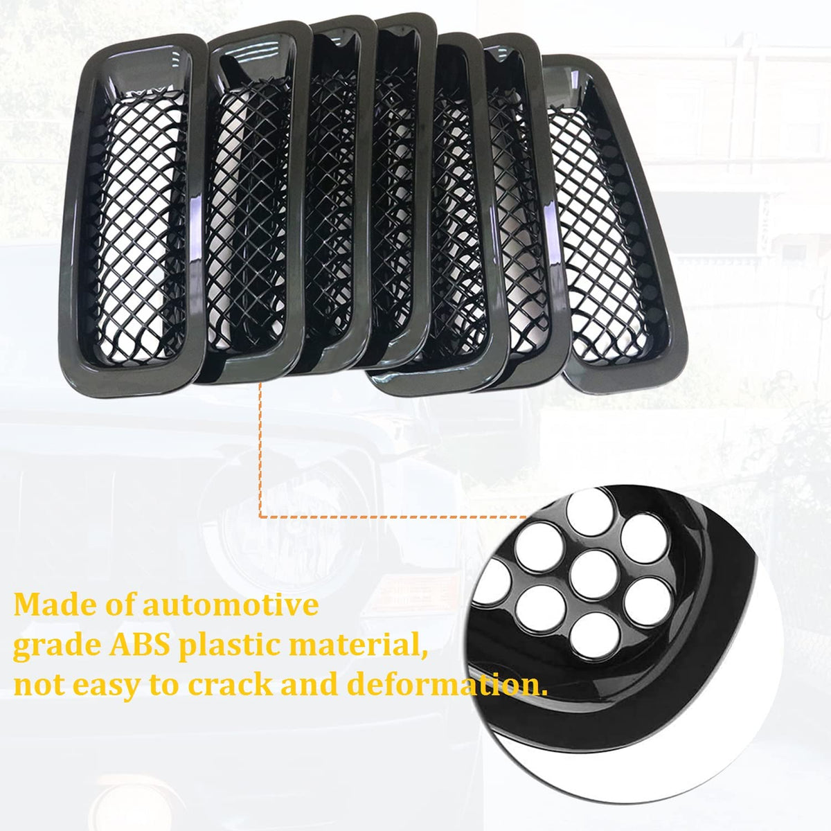 Abs Bezels Front Light Headlight Cover Angry Bird Style & Mesh Grille Grill Insert Kit Trim For Jeep Patriot Accessories 2011-20