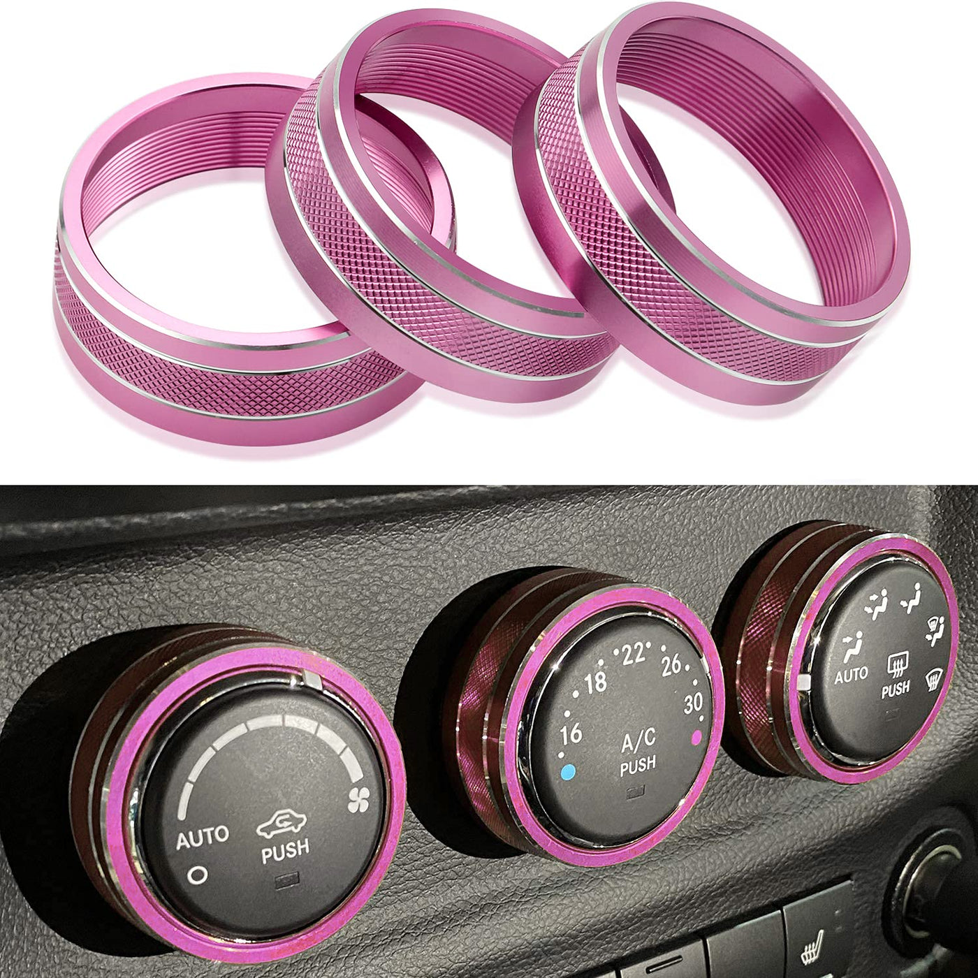 Ac Climate Control Knob Ring Air Conditioner Switch Volume Cover Compatible With 2011-2017 Jeep Wrangler Jk Jku/Dodge Challenger 2008-2014 Interior Conditioning Accessories Trim (3Pcs/Set, Pink)