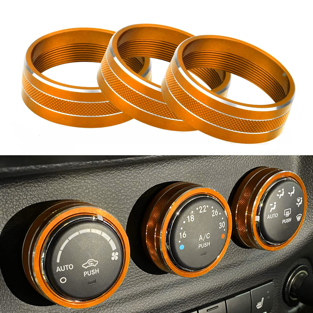 Ac Climate Control Knob Ring Air Conditioner Switch Volume Cover Compatible With 2011-2017 Jeep Wrangler Jk Jku/Dodge Challenger 2008-2014 Interior Conditioning Accessories Trim (Orange)