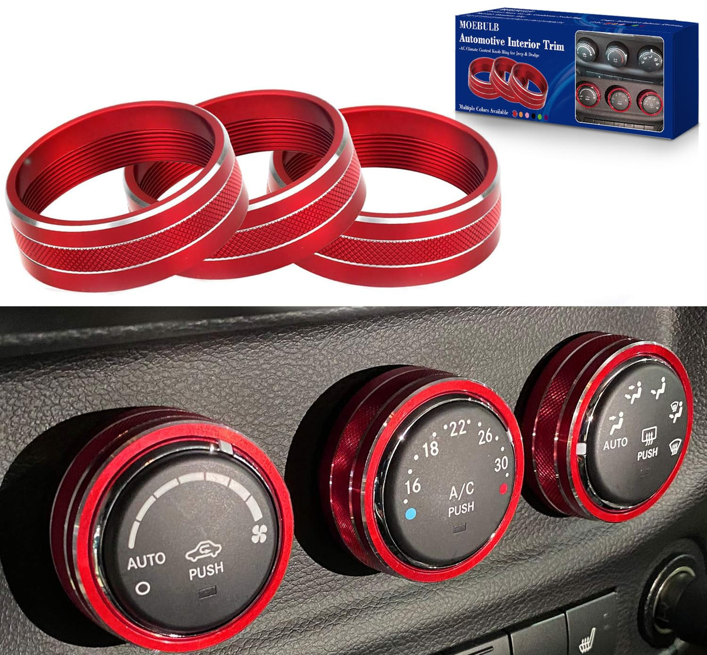 Ac Climate Control Knob Ring Air Conditioner Switch Volume Cover Compatible With 2011-2017 Jeep Wrangler Jk Jku/Dodge Challenger 2008-2014 Interior Conditioning Accessories Trim(Red)