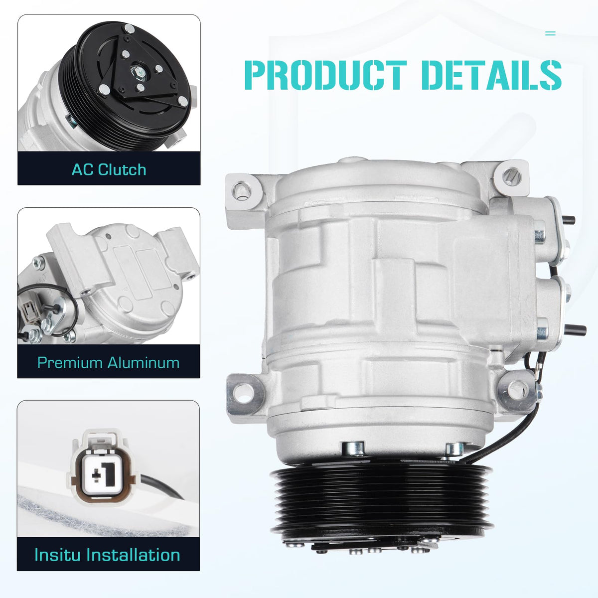 AC Compressor with Clutch Fits for Honda CR-V 2.4 2.4L 2002 2003 2004 2005 2006, Without heating switch, Replaces CO 10663PC