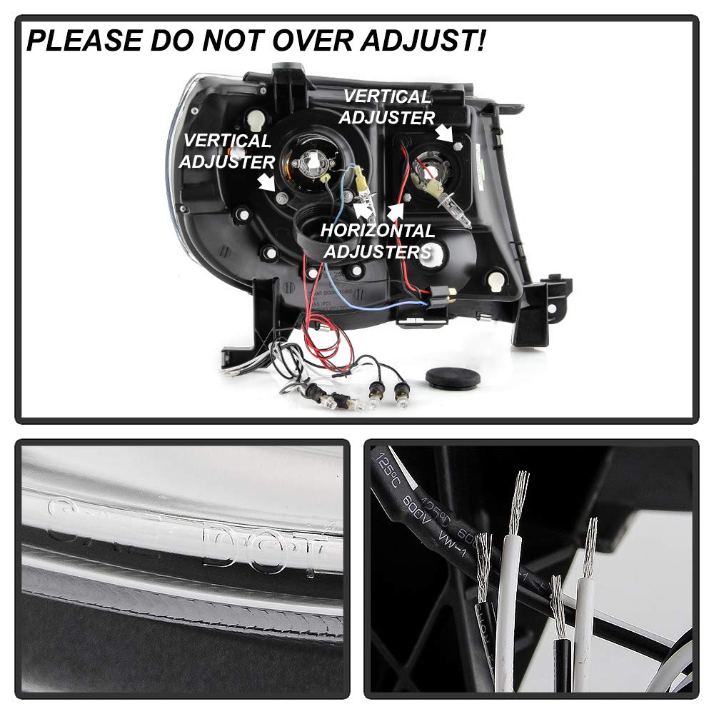 DESIGNED REPLACEMENT FOR2005-2011 Toyota Tacoma[2-Door Regular Cab | 3/4-Door Extra Cab | 4-Door Crew Cab]OEM Equivalent Part Number: 8115004163, 8111004163, TO2502157, TO2503157Condition: NewColor: Titanium ClearChrome Housing | Clear Lens Package Include: Driver & Passenger Side (Housing & Lens)PRODUCT FEATUREAngel Eye:LED Halos are made with the Best Materials and Precisely Illuminate with Ultra-Bright SMD LED chipsLens:Our Polycarbonate Lens offer Superior UV protection and a High Impact ResistanceStreet Legal Reflector:Highly Reflective Amber Reflectors offer OEM compliances with DOT and SAE standardsCondensation and Debris Protection:Our Lights Use the Highest Quality Butyl Sealant to Prevent any Imperfections to Enter the Light Housing