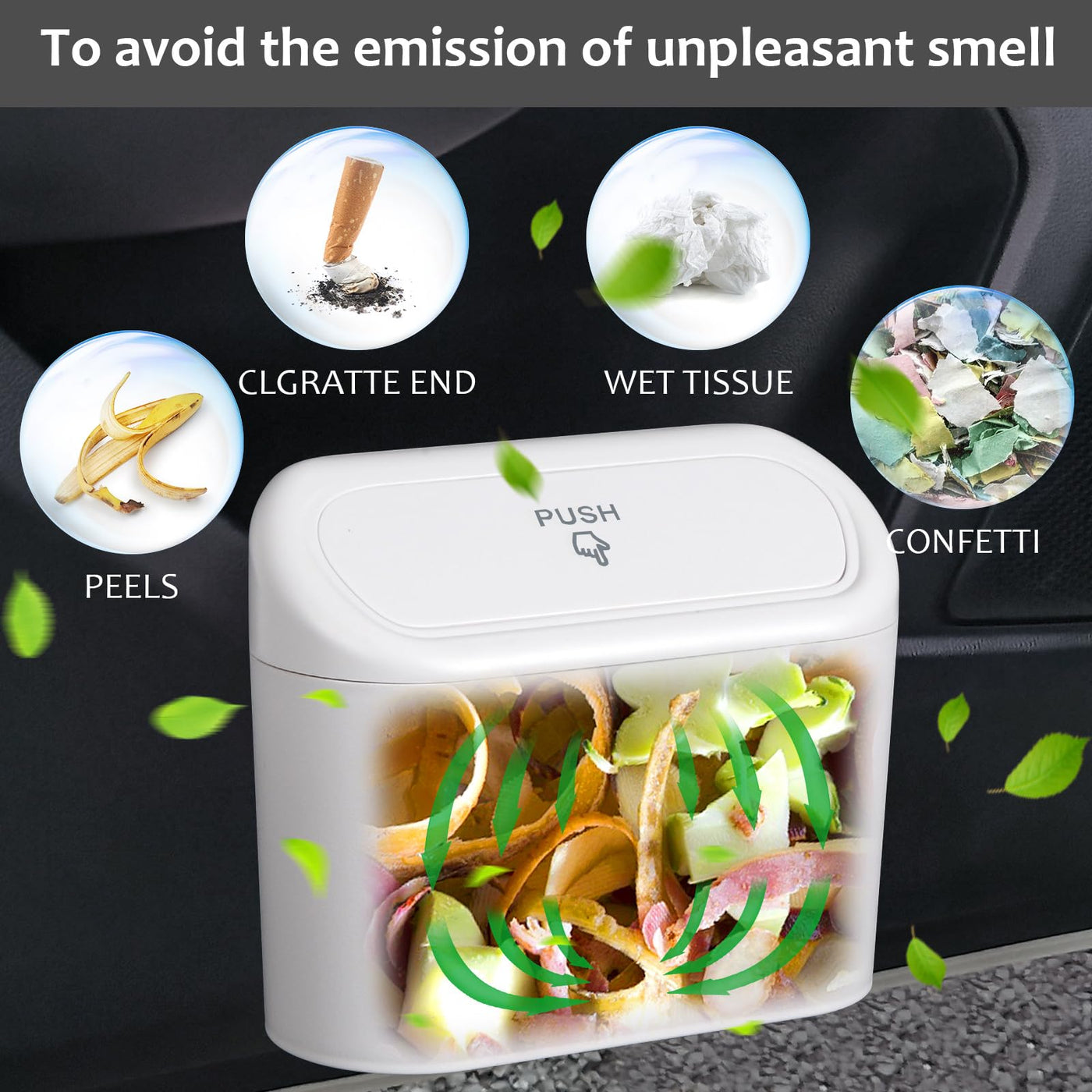 Package Includes: - 1*Black Car Trash Can - 1*White Car Garbage Can - 2 Roll Trash Bag