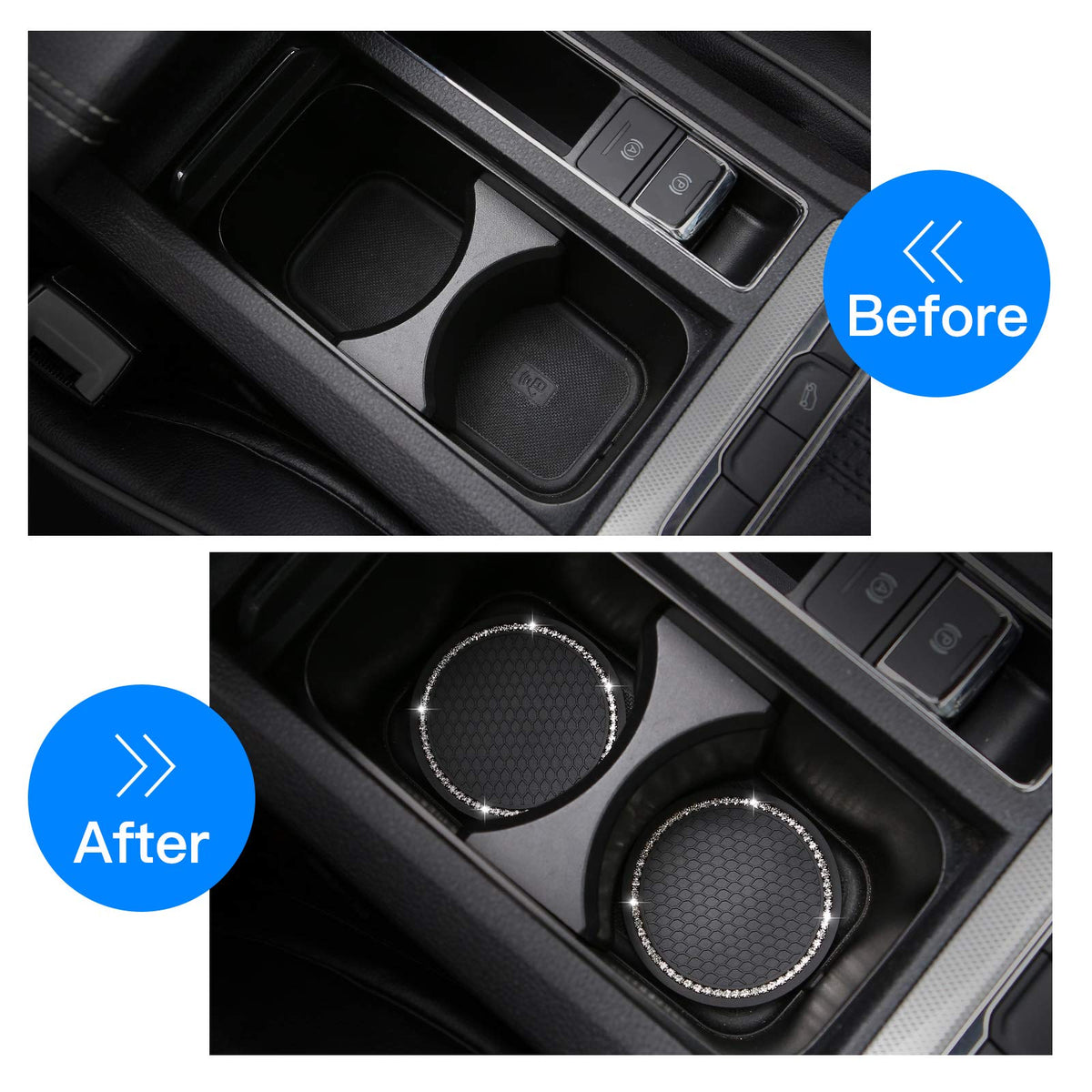 Q: Do these coasters help reduce noise while driving?A: Yes, the anti-slip design of the Bling Cup Holder Coasters helps prevent cups from sliding around, which reduces noise caused by movement while driving, enhancing your overall driving experience.