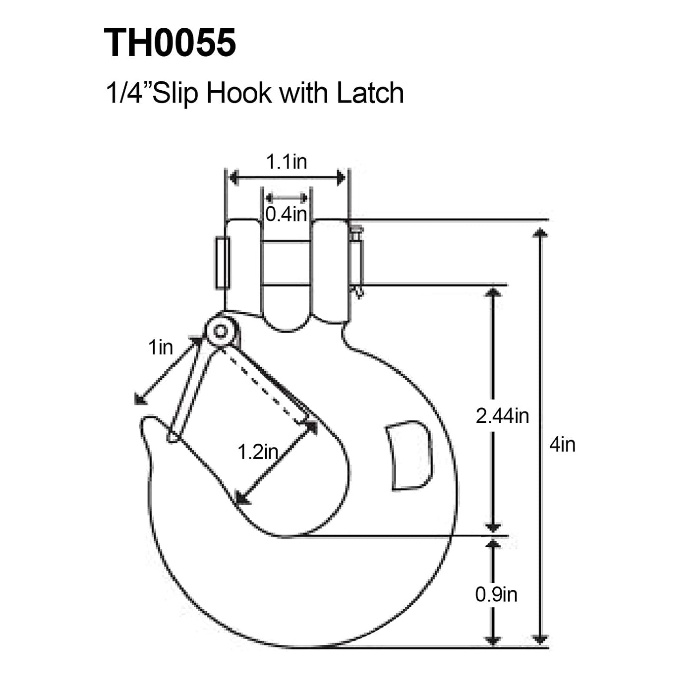 Aconnet 1/4 Inch Steel Clevis Slip Hook Ideal For Use With Most Atvs Or Utv Winches. And These Forged Steel Chain Hook 1/4 Inches Can Be Used As A Replacement Part On Most Winches Or Used On The End Of A Length Of Chain. -- Grade 70 Rating, 7,800Lb Work Load Limit. -- Come With Spring Pin Safety Latch. -- Corrosion-Resistan And Dependable Strength. -- Suitable For 1/4Inch Diameter Chain. Specifications: Material: Carbon Steel Hook Opening: 3/4'' (20Mm) Overall Dimensions: 4'' (L) X 2.5'' (W) X 7/8'' Break Strength: 26,400 Lbs Loads: 7,800 Lbs Weight: 11Oz/Per Package Included: 4 Pack Of 1/4'' Chain Hook