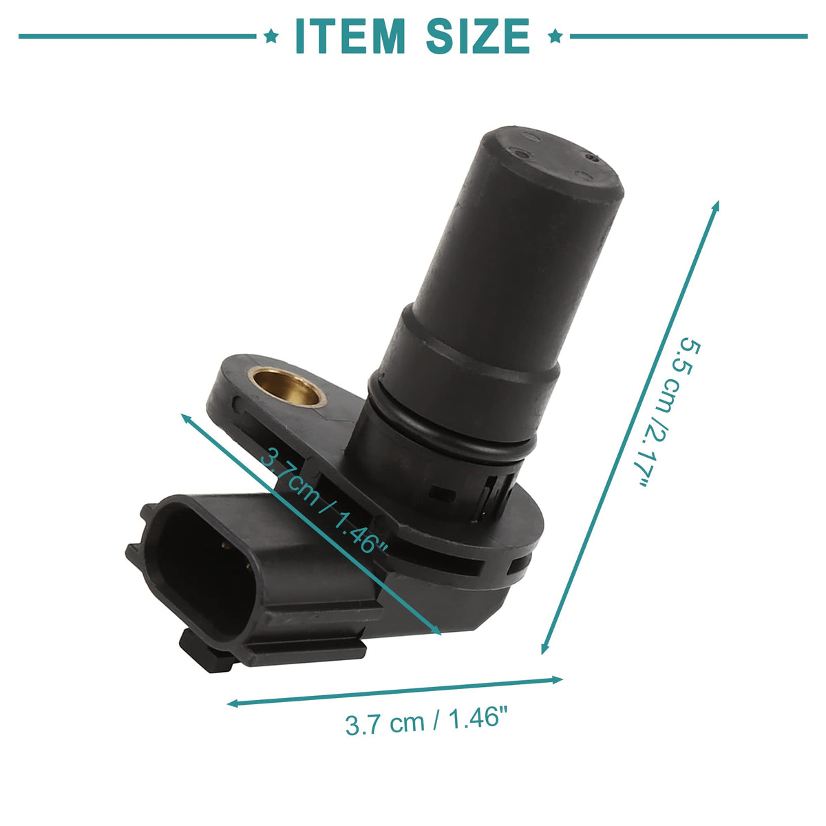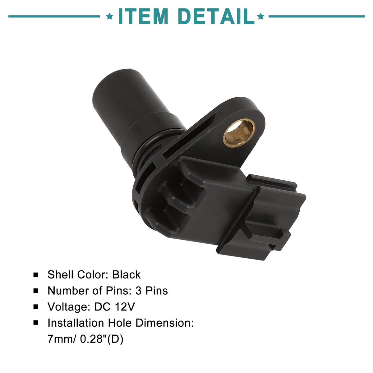 Q: What are the specifications of the ACROPIX Crankshaft Position Sensor?A: This sensor has a shell color of black, features 3 pins, operates at a voltage of DC 12V, and has an installation hole dimension of 7mm (0.28 inches). Its overall dimensions are 3.7 x 5.5 x 3.7 cm (1.46 x 2.17 x 1.46 inches).