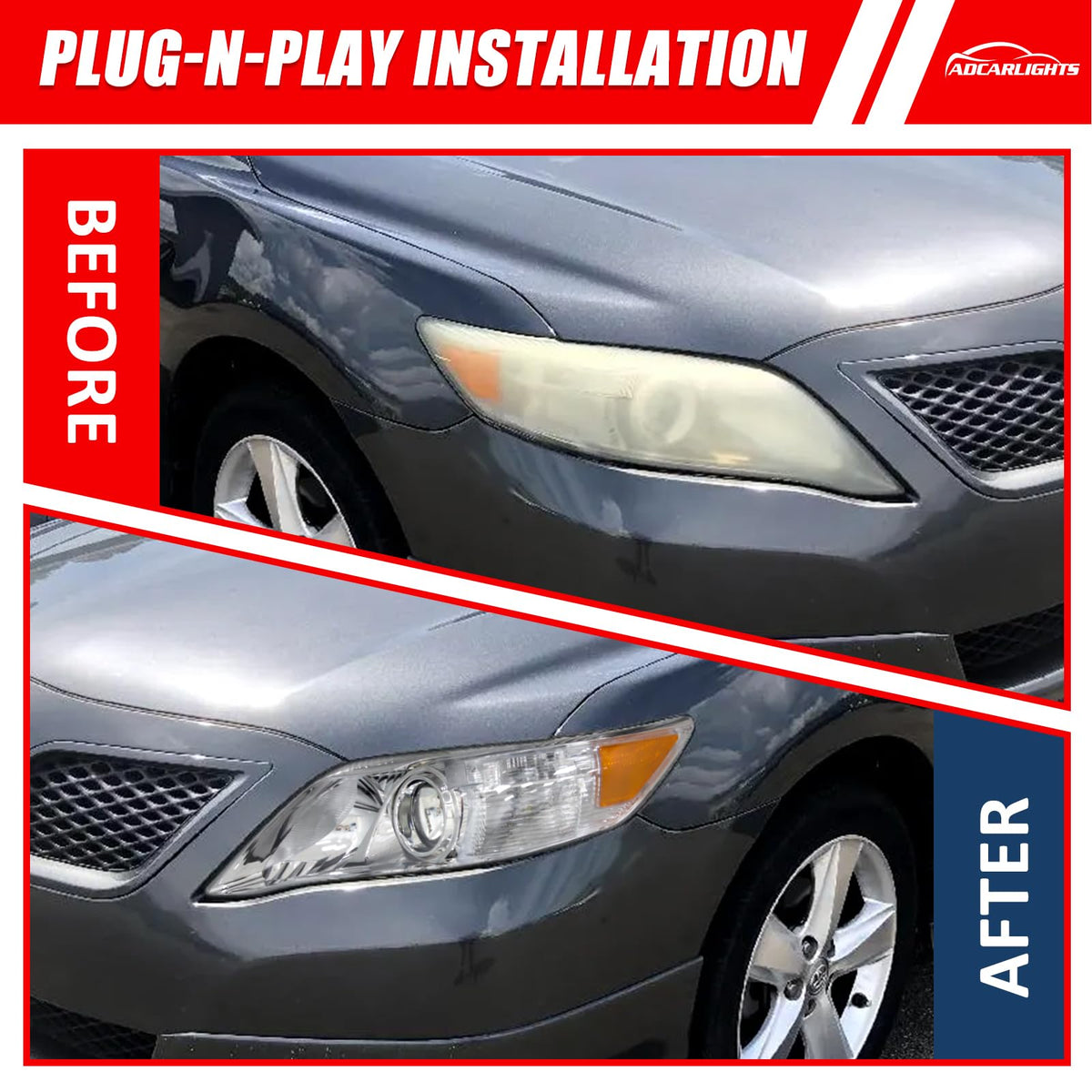 Q: Is the ADCARLIGHTS headlight compatible with my 2011 Toyota Camry?A: Yes, the ADCARLIGHTS headlight is specifically designed to be compatible with the 2010 and 2011 Toyota Camry models. However, it does not fit Solara models or Japan-built Camry models.