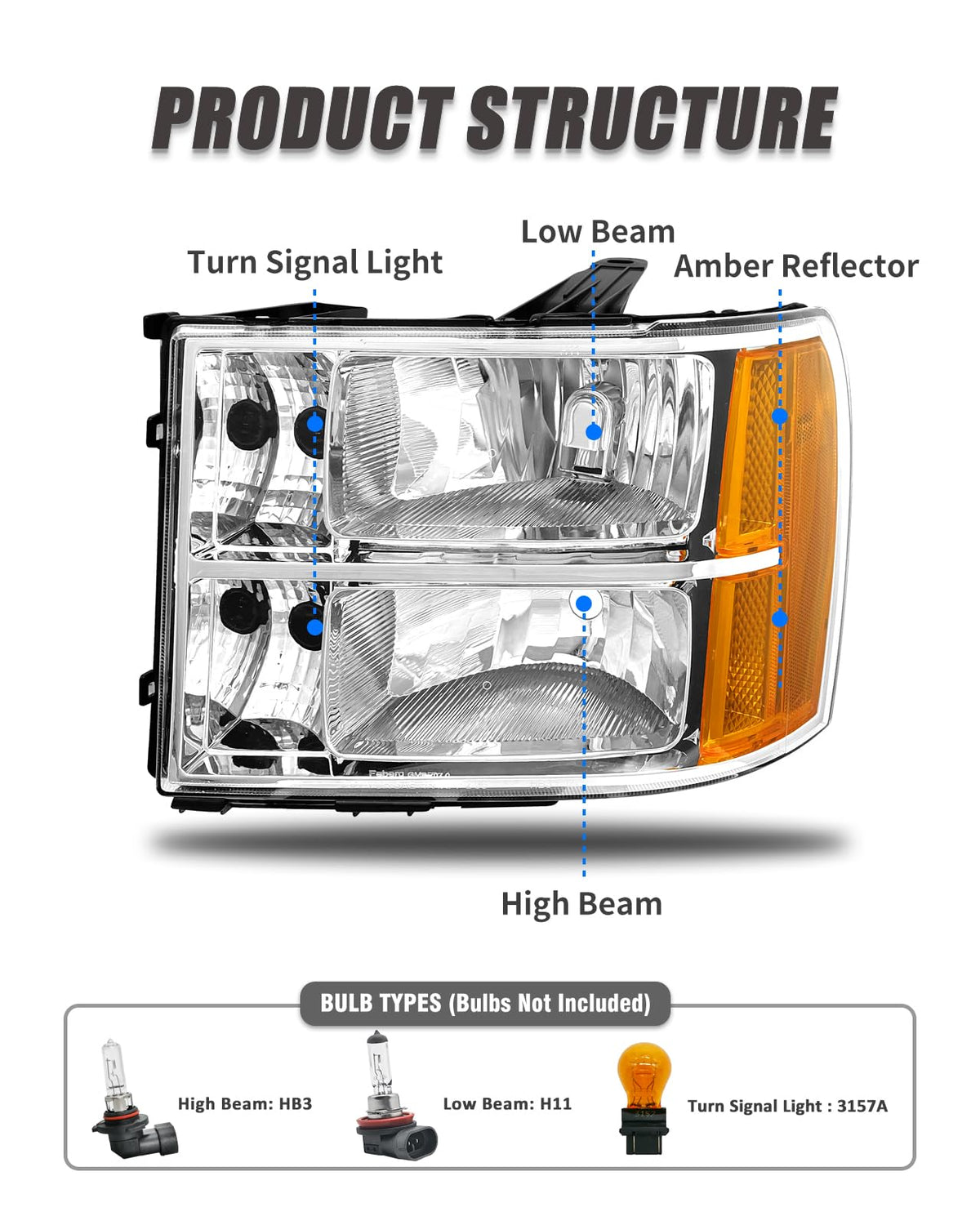 Adcarlights For 2007 2008 2009 2010 2011 2012 2013 2014 Sierra Headlight Assembly Compatible With 07-13 Gmc Sierra 1500/07-14 Gm