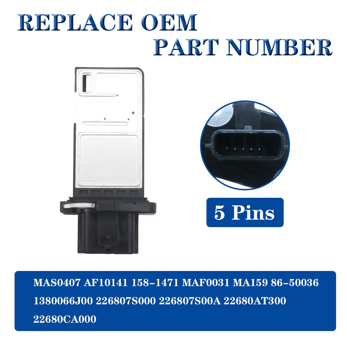 Q: What vehicles are compatible with the AdvanEX Mass Air Flow Sensor?A: The AdvanEX Mass Air Flow Sensor is compatible with various Nissan and Infiniti models including the 2003-2015 Nissan Pathfinder, 2005-2012 Frontier, and 2008-2013 Infiniti G37 among others. Please check the specific model year and engine size for fitment.