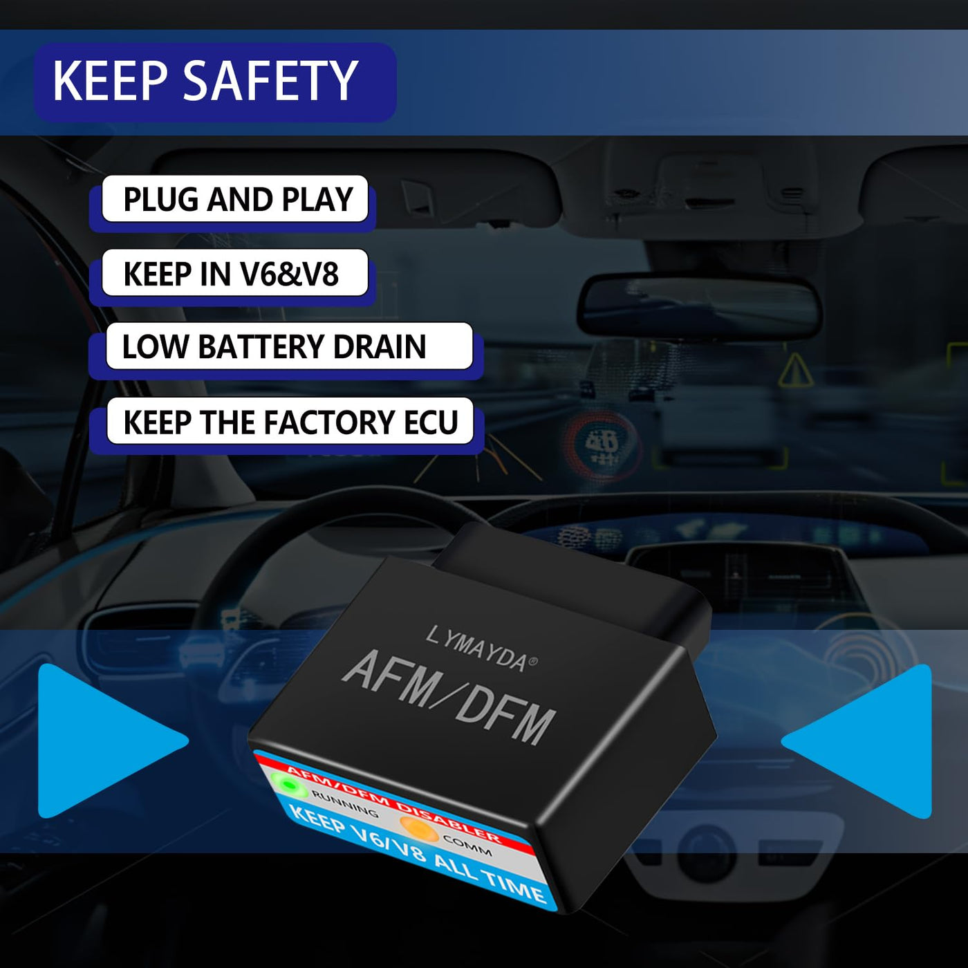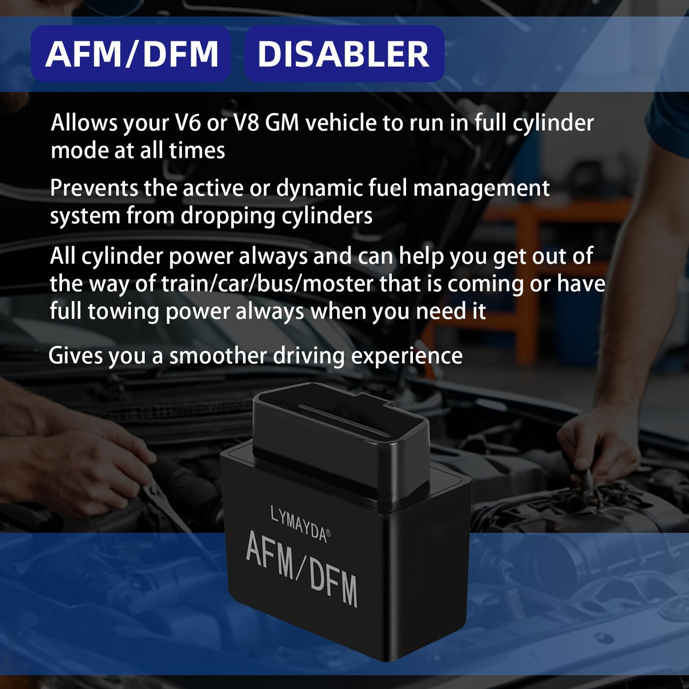 Q: How does the AFM/DFM Disabler work?A: This device plugs directly into your vehicle's OBD-II port and works instantly to eliminate the Active Fuel Management (AFM) system, allowing your engine to run in full cylinder mode at all times.