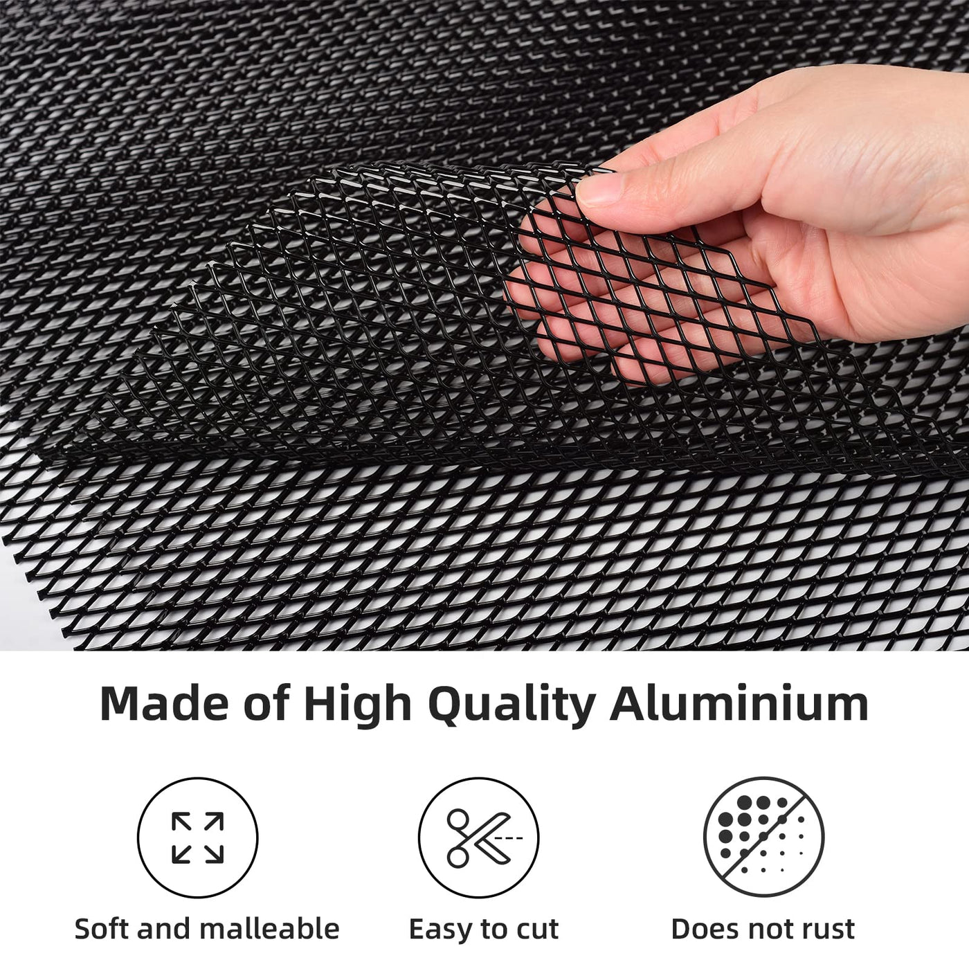 Feature: Made of aluminium alloy and durable use. Soft but durable, easy to cut and install, perfect for custom grille inserts Universal Fit for any bumper, body kit, fender, hood vent, vehicle opening etc. Protect your intercooler, radiator, and engine bay from road rocks, debris, garbage, leaves, etc. Allowing air to pass by and keep the engine running cool. The grill mesh can be bent and molded into different shapes. Specification: Color: Black Material: Aluminium Alloy Size: 13 x 13inch/ 33 x 33cm Mesh size: 6x12mm Installation Method: 1. Prepare the corresponding tools, such as large sharp scissors, saws, sanders, etc.; 2. The grill mesh is cut according to the shape of the mid-net frame, it is best to leave a certain space size, in order to adjust conveniently; 3. Saw off the grid of the original grill mesh, leaving only the middle net frame, and cover the middle net after cutting and grinding; 4. Use steel wire, wire buckle, or glass glue (the kind that sticks to the front windshield) to fix it. If you use glass glue, you have to be equipped with a hot air fan to enter the operation. Package Included: 3x Car grill mesh