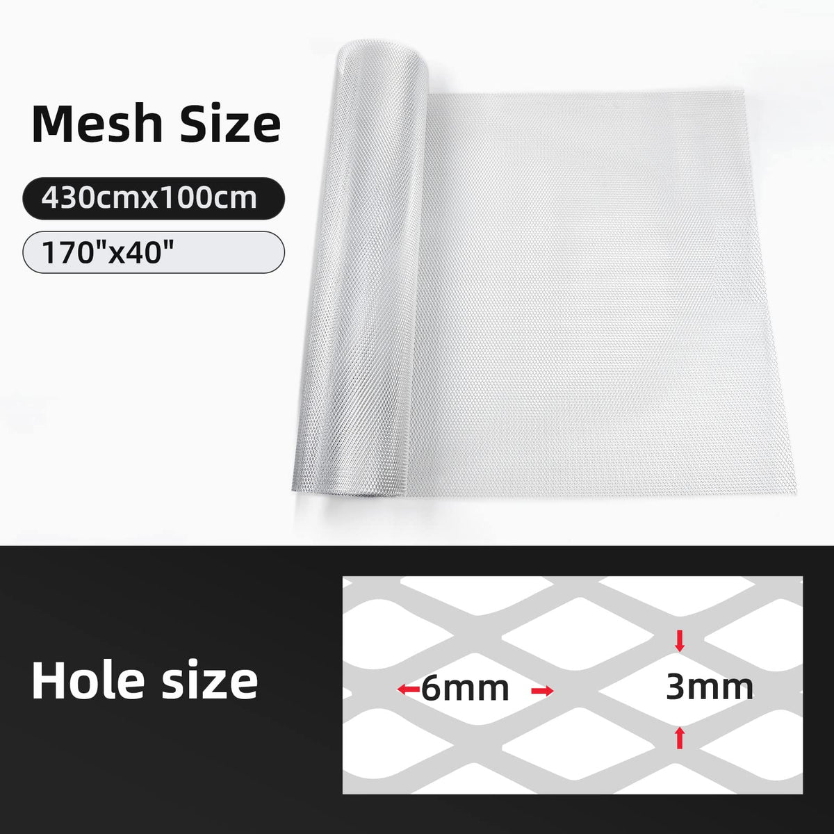 Function: The car grill mesh can prevent debris or harmful things from damaging the radiator. It reduces the number of times you have to repair your car radiator and is one of the most cost-effective materials. | Good material: The vehicle grille mesh is made of aluminium alloy, anti-corrosion, durable to use. Sun resistant and waterproof, does not affect the service life. | Easy installation: This car grill mesh sheet is easy to be cut and installed. The grille mesh can be DIY to the desired shape. You only need hand tools to easily install your projects. | Widely used: The vehicle grille mesh can be bent and molded into different shapes, fit for any bumper, body kit, hood vent, vehicle opening, etc. It also can be use in your home where in need. | More options: We offer mesh in a wide range of materials and sizes. Providing more and better automotive grille mesh materials is our goal.