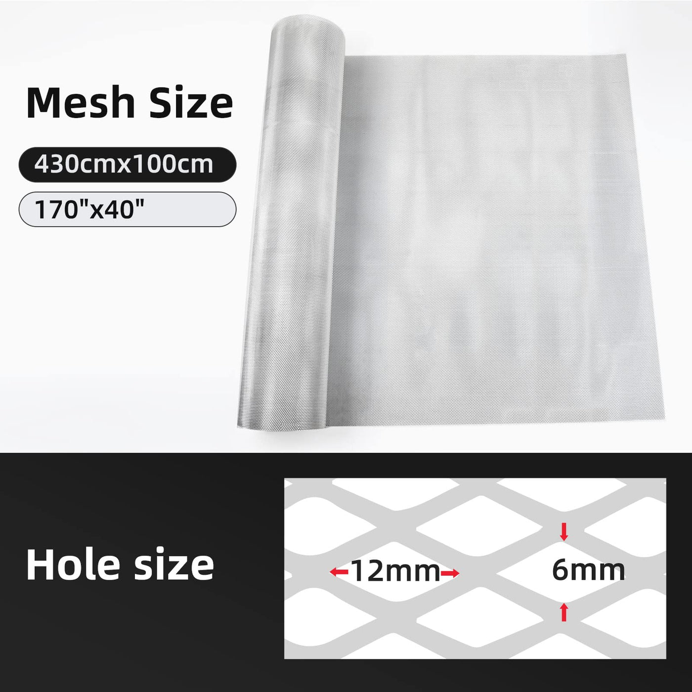 AggAuto Universal 170''x40'' Car Grill Mesh - Aluminum Alloy Automotive Grille Insert Bumper Rhombic Hole 6x12mm, One of the Mos