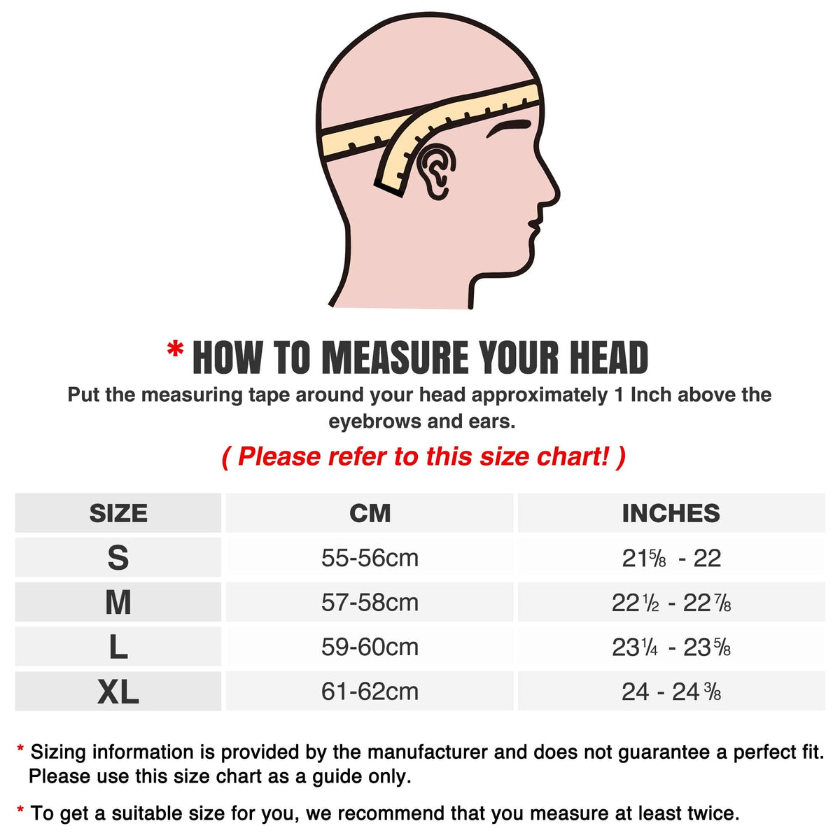 - Before Purchasing, Please Measure Your Head'S Circumference To Determine Which Size Is Suitable For You. - Here'S The Way: - Wrap The Flexible Measuring Tape Around Your Head. - Position It On The Broadest Part Of Your Forehead Above Eyebrow And The Most Prominent Part Of The Back Of Your Head. - Make Sure The Measuring Tape Lays Flat Against Your Head But Doesn'T Pinch. It Should Be Level All The Way Around.