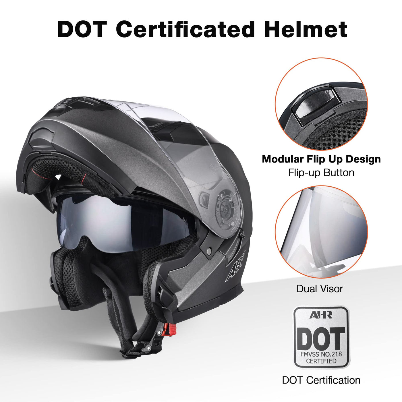 Ahr Motorcycle Helmet Dual Visor Modular Flip Up Full Face Helmet Dot Approved - Ahr Run-M3 For Adult Motorbike Street Bike Mope