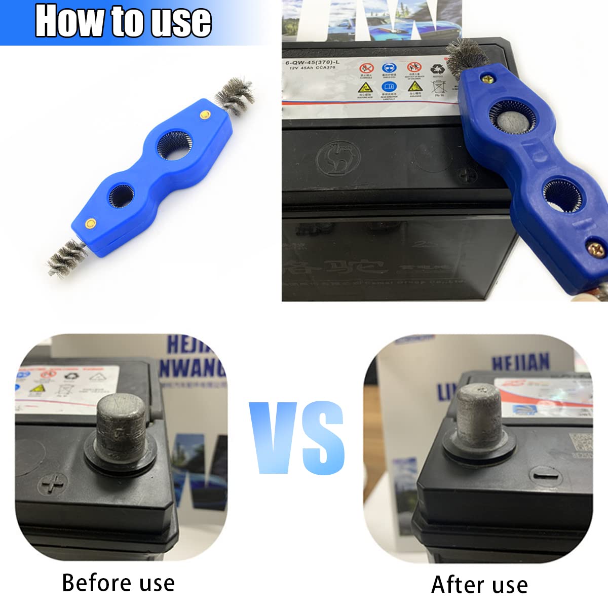 AICEL 2 Pieces Car Battery Terminal Cleaners, 4 in 1 Car Battery Cleaning Brush with Steel Wire, Anti-Corrosion Battery Terminal
