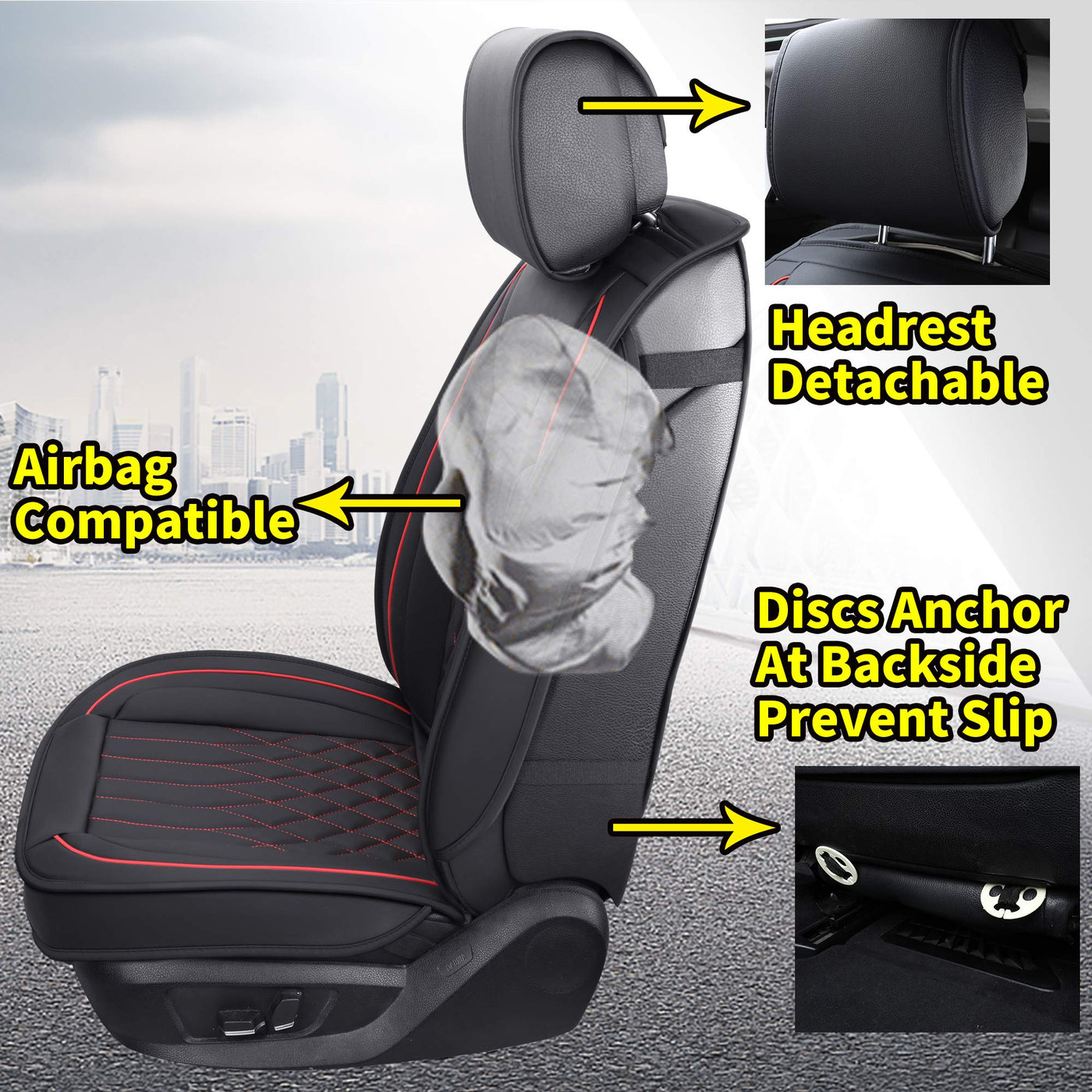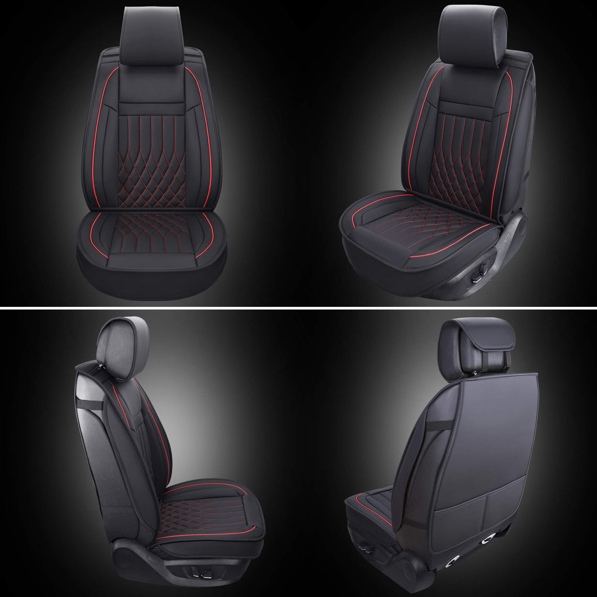 Specification: Product Name: 2Pcs Leather Car Seat Cover Front Seat Material: High-Quantity Faux Leather Package:Chuck X5 (1 Spare )+Hook X5 (1 Spare)+Front Car Seat Covers X 2 + Headrest Covers X2+ Installation Manual(If You Need, We Can Also Provide Installation Video) Package Size: 25 X 21 X 4 Inches (L*W*H) Color: Black-Red Net Weight: 8.81 Lb Application: According To Our Selling Experienc,Aierxuan Car Seat Covers Is Fit For More Than 99% Full Seat Covers.Such As Hatchbacks,Suvs,Crossovers,Pickup Trucks,Crew Cab,Vans,Evs.And So On.These Car Seat Covers Are Ready For 60/40, 50/50 And 40/60 Fold Downs, Making It Simple For The User. A Few Words About Us: Welcome To The Aierxuan Store.Our Product&Nbsp;Is Made Of High-Quality Faux Leather, Which Is Soft, Durable, Waterproof, Scratch Resistant And Easy To Clean. Considering Your Driving Security,The Sides Of The Front Seats Are Not Fully Covered So That The Airbag Can Open In An Emergency. Our Front Seat Covers Will Fit All Vehicle From A Small Coupe To A Large F350, And The Rear Seat Make Sure Your Seat Width Is Less Than 59 Inch. Meantime,We Offer A Variety Of Car Accessories Such As High Quality Seat Covers And Car Covers For Most Makes And Models On The Market, Protective Floor Mats, Genuine Leather Steering Wheel Covers And So More. If You Need Any Question And Service, Please Contact Us And We Will Serve For You With All Sincerity!Thank You&Nbsp;For Your Support! &Nbsp;