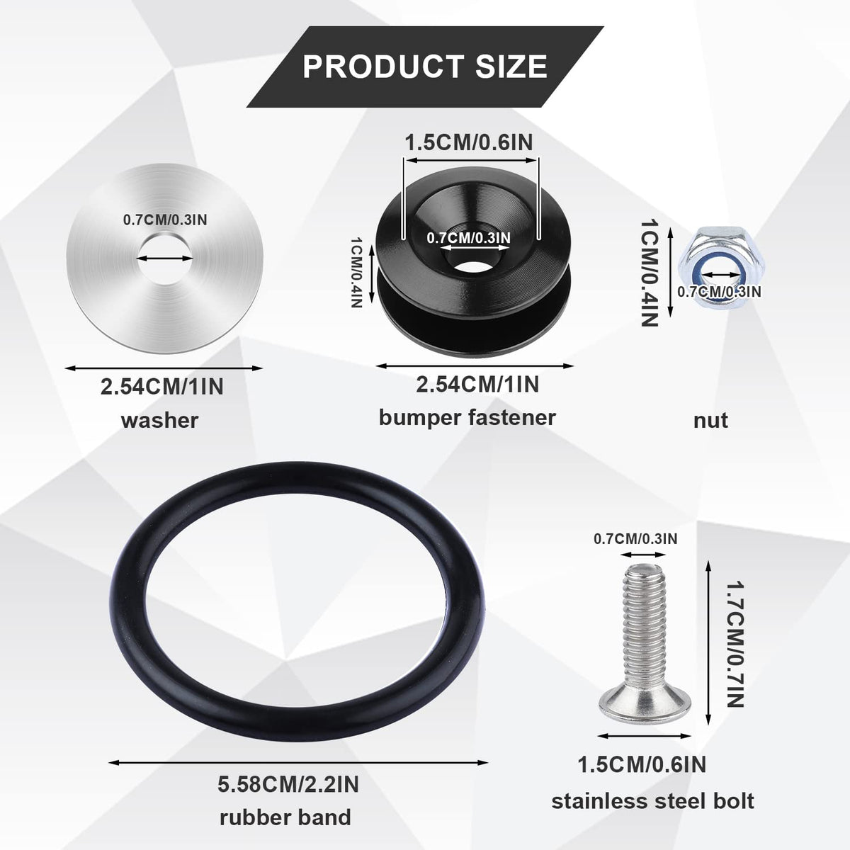 Specification: Color: Black, Silver Material: Nbr, Aluminum Product Size: As Shown In The Detail Picture Package Details: 4 X Black Bumper Quick Release Tabs 4 X Nuts 4 X Stainless Steel Bolts 4 X Washers 2 X Bumper Fastener O Rings Note: Due To Manual Measurement, The Size And Weight May Have A Certain Error. Due To The Difference Between Monitors, There May Be A Slight Color Difference.