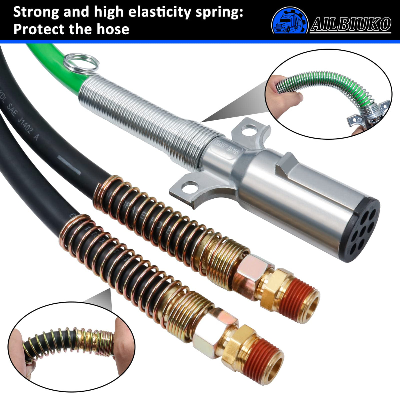 Ailbiuko Semi Air Lines Kit, 15FT 3-in-1 Airline Hose for Truck ABS 7 Way Electrical Cable with Glad Hands and Extra Gladhand Se