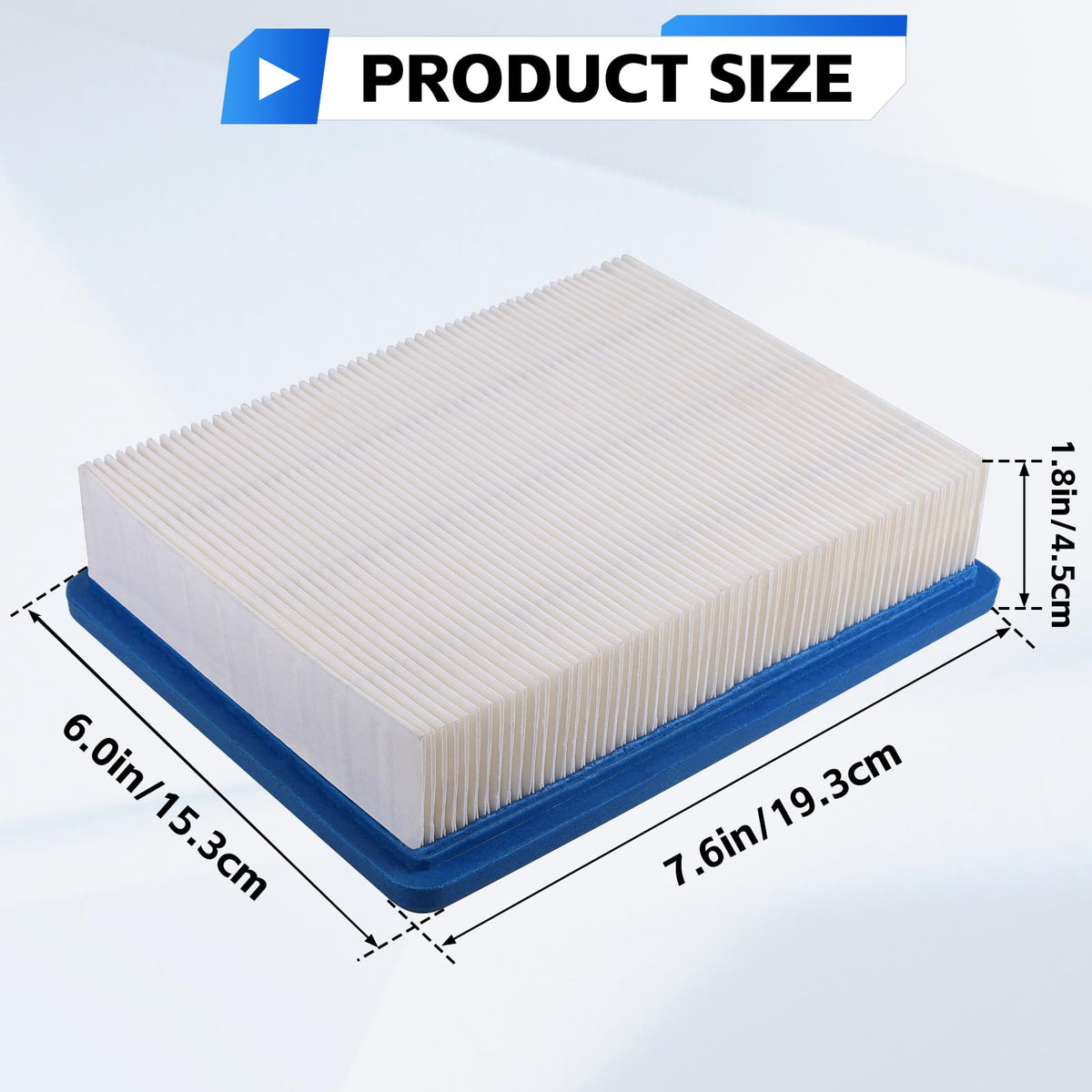 Q: What are the dimensions of the air filter?A: The air filter measures 6 inches in length, 5.63 inches in width, and 1.94 inches in height, making it a precise fit for compatible models.
