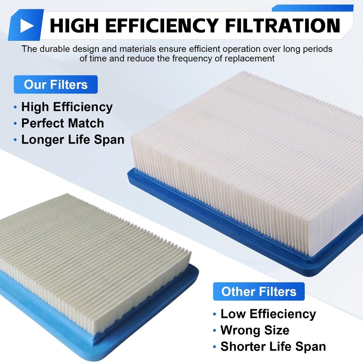 Q: Can this air filter improve engine performance?A: Yes, this air filter is built to strict quality control standards, providing better sealing and filtration, which helps improve air flow and protects the engine from dirt and dust.