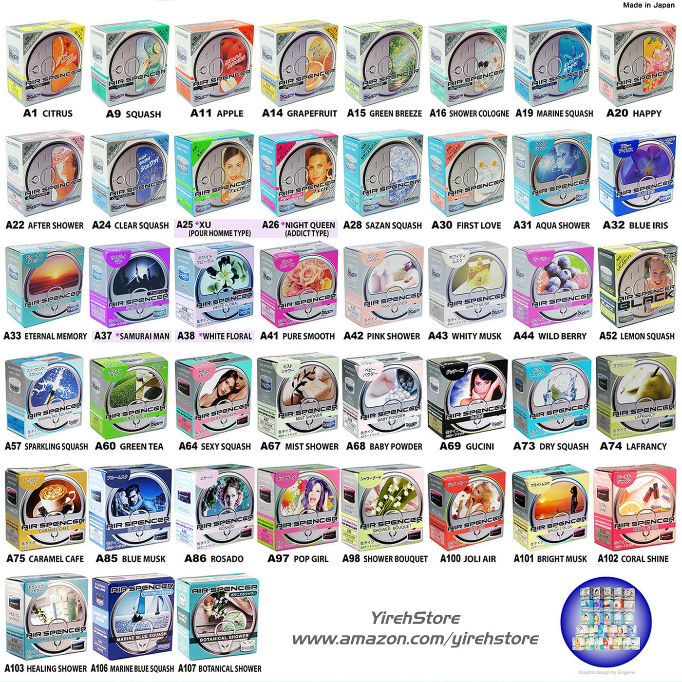What does A19 Marine Squash Smell Like The closest we could come up with is a fusion of jasmine and vanilla. A very fresh smell. Air Spencer is the ultimate Japanese car air fresheners. This model is designed with 2 open sides for consistent freshness. Amazing refreshing fragrance smell will last long for you and your passengers. You can open both sides at a same time for stronger scent and place the cartridge vertically (as a standing position). However, we suggest to use one side at a time. The size is small enough to fit in your cup holder or underneath passenger seat. Please visit our store to see more luxury air freshener - ..comyirehstore