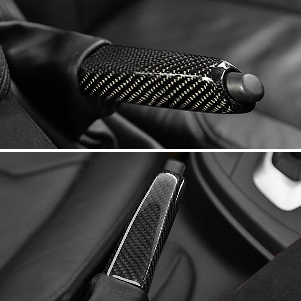 Q: What material is the handbrake cover made from?A: The handbrake cover is made from high-quality carbon fiber, which offers durability and a premium look compared to standard materials like ABS.