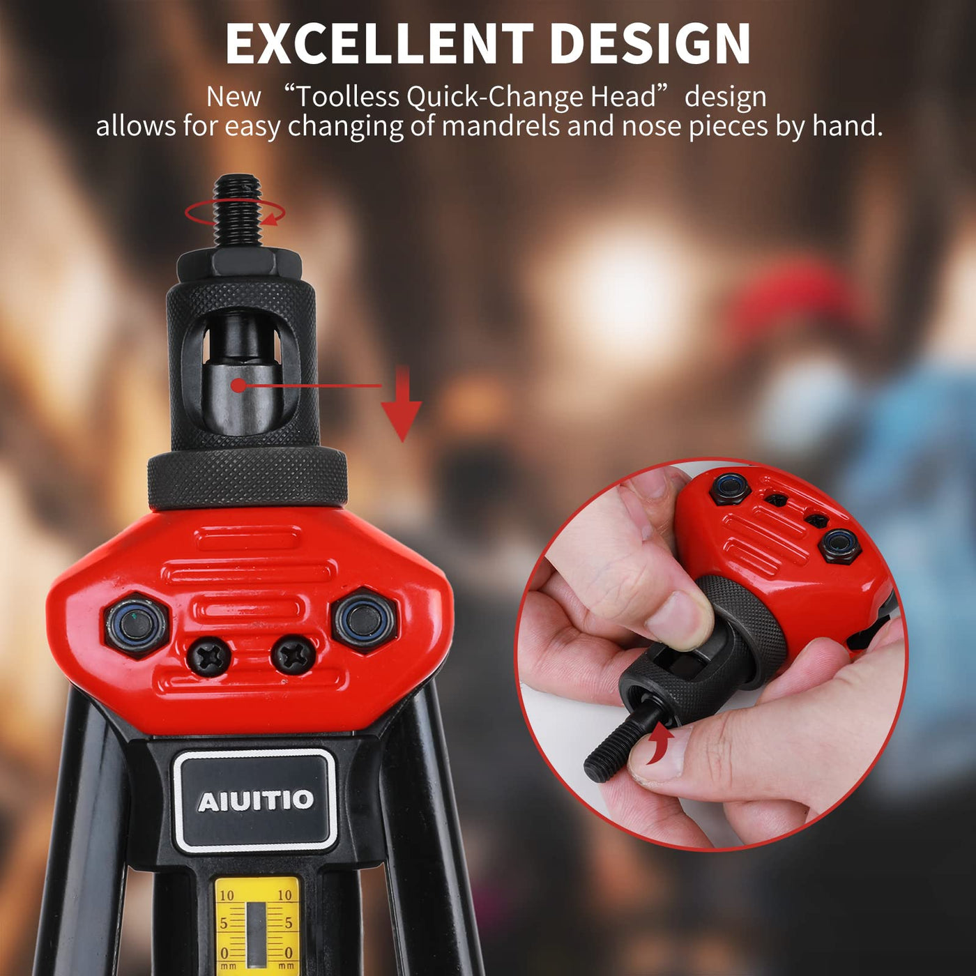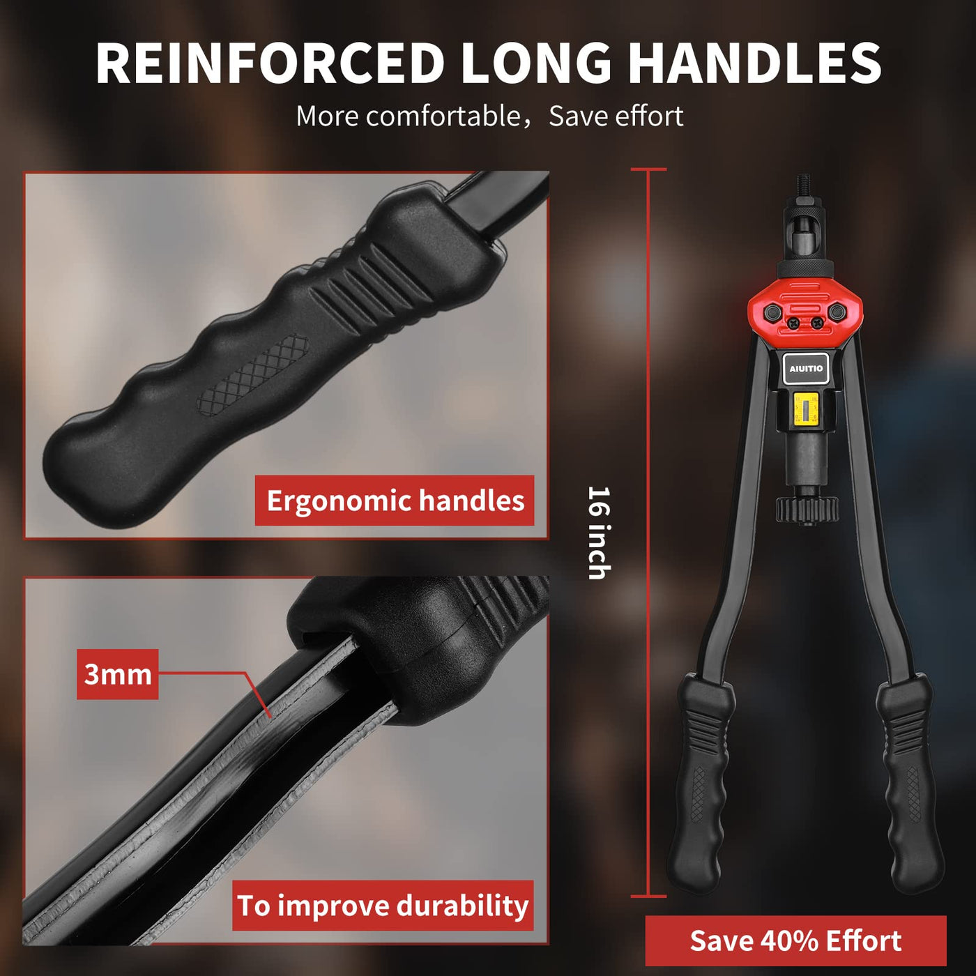 Aiuitio 16 Rivet Nut Tool, Rivnut Tool Kit With 13 Metric And Sae Mandrels, Nutsert Rivet Tool Set With 200Pcs Rivnuts, Threaded Insert Hand Riveter With Rugged Carrying Case