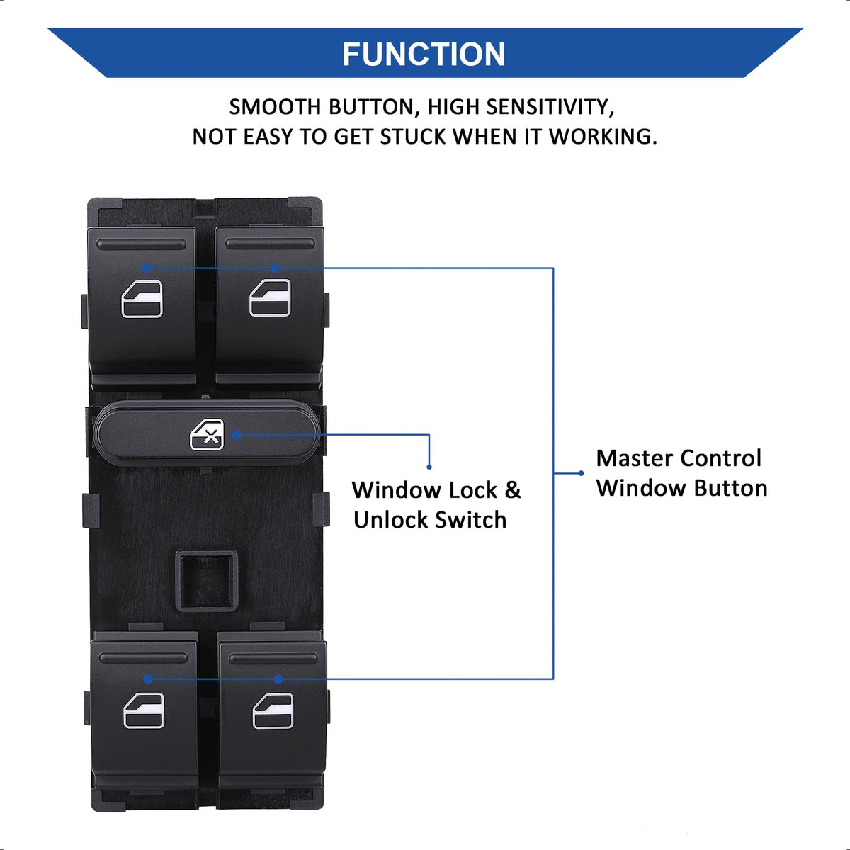 AiYiGu Driver Side Power Master Window Switch, Compatible with 2005-2014 VW Jetta/Golf/Passat | CC/Tiguan/Rabbit/GTI,Replace 1K4