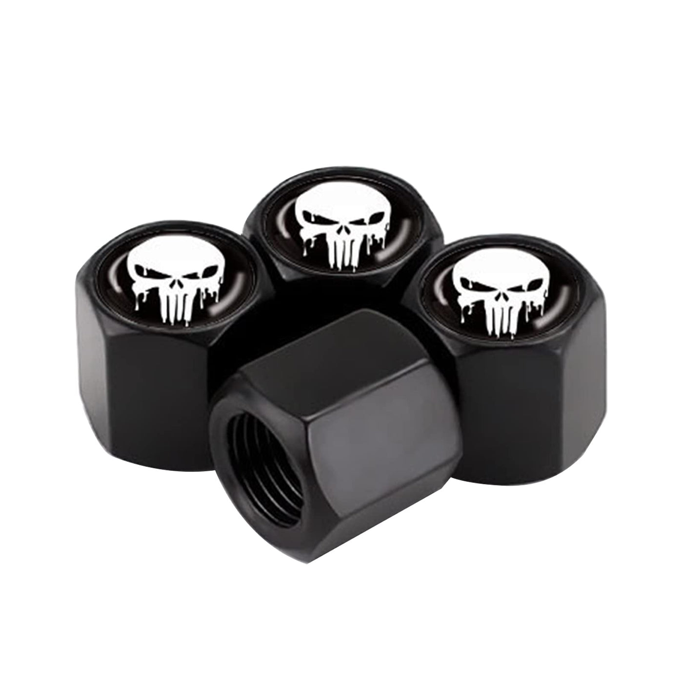 Ajxn 4 Pack Skull Car Wheel Tire Valve Stem Caps Airtight Dust Proof Covers Universal Tire Air Valve Caps For Cars, Trucks, Bicycles, Car Accessories For Men And Women (Black Skull #18)