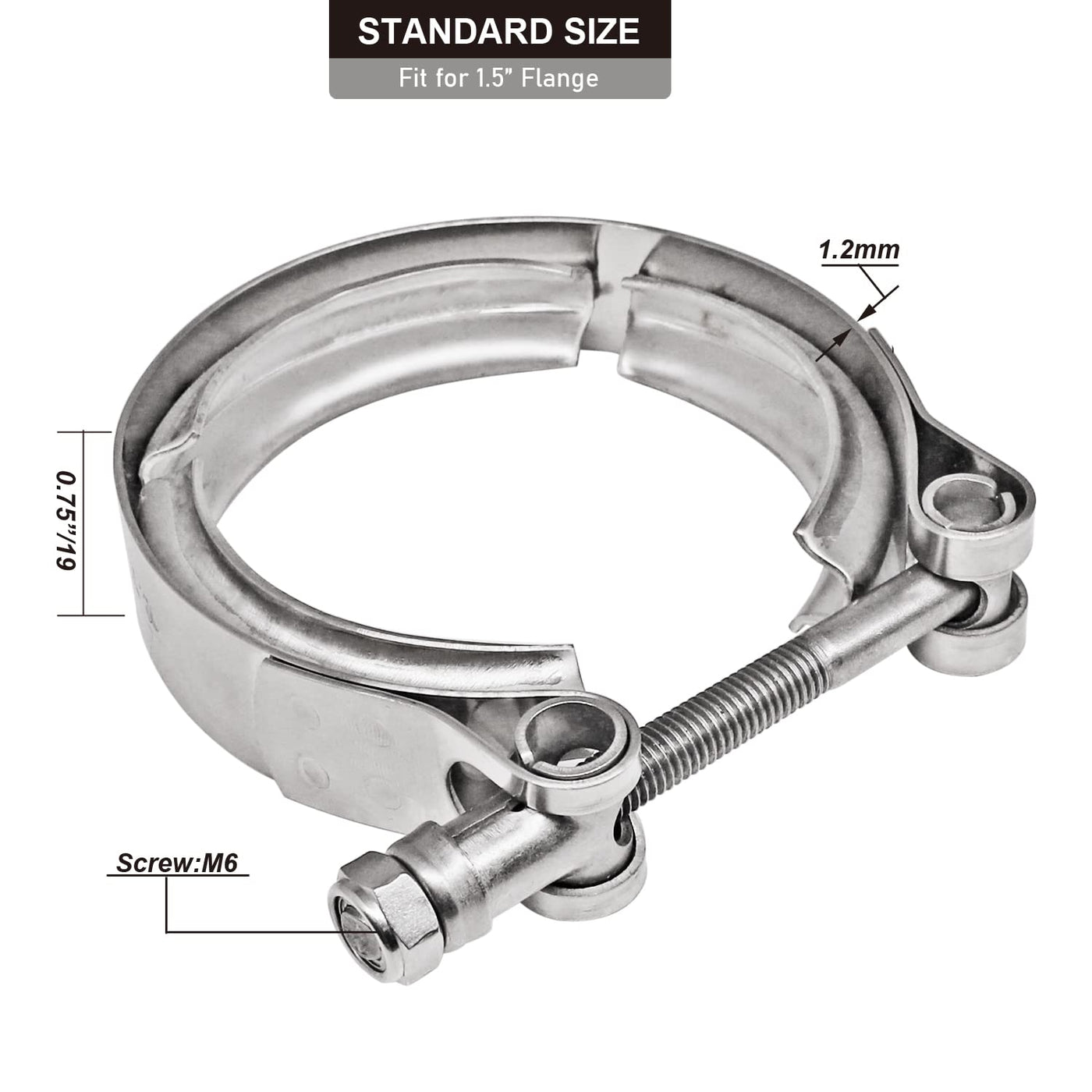 Akihisa 1.5 Inch 304 Stainless Steel V Band Clamp, For Turbo Exhaust Down Pipes Flange Kit, Racing Ford Pickup Truck Exchange Ex