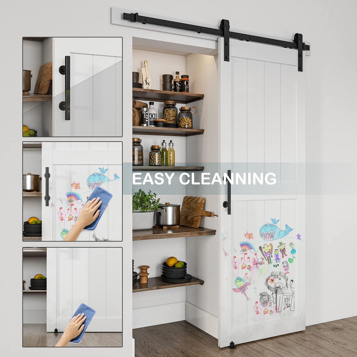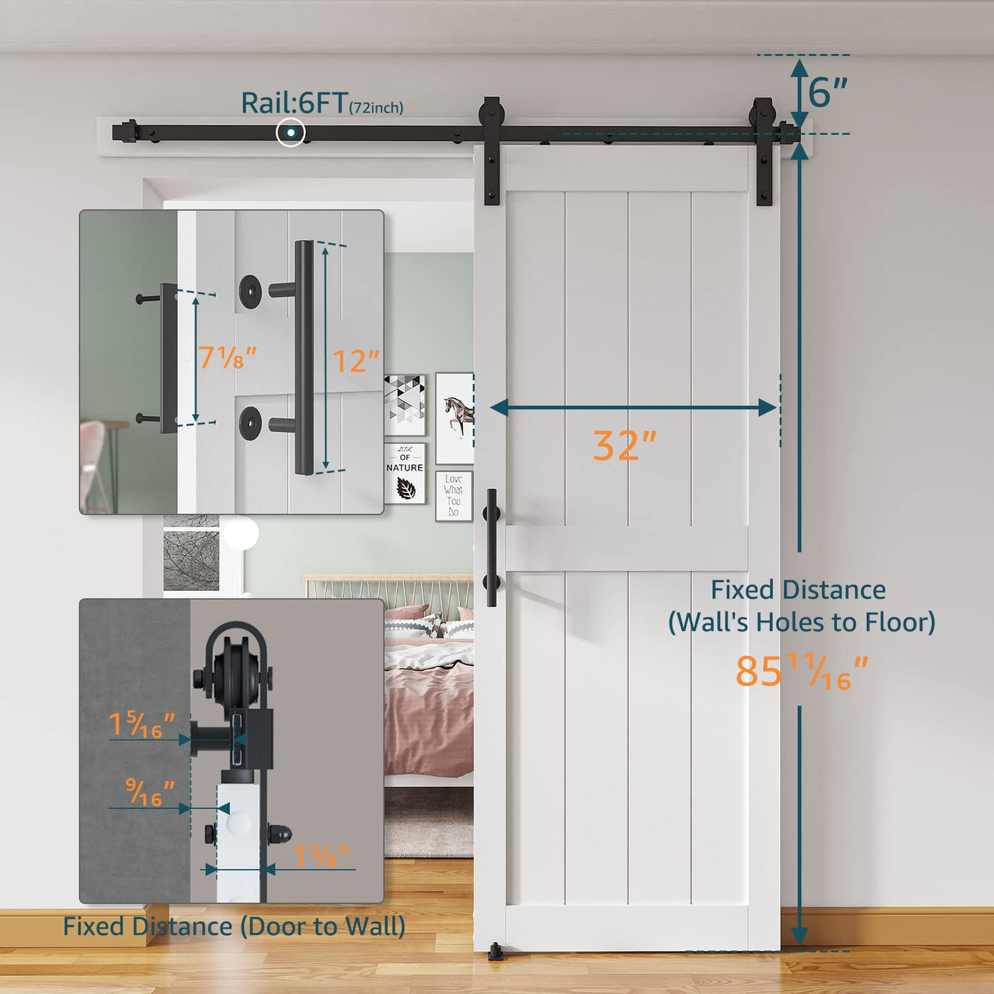 MDF Material: With CARB P2 certification, the main component is pine wood and a small amount of other wood and adhesives are added to extrude the wood slab. High-quality furniture decoration materials, harder than a natural wood door.(DOOR IS UNASSEMBLED) | Easy Installation for DIY Novice: Pre-drilled Door and hardware, with step by step installation manual, professional customer service, any question would be replied within 24 hours. Easy and Meaningful Installation processes with your family. Nice product gift for your home decor! | Package Includes: 1x Barn Door, Width: 32'' Height: 84'' Thickness: 1 3/8'', H-shape; 1 X 6 FT Barn door hardware kit, 1x Barn Door Handle, length: 12''; 1x Barn Door Floor Guide, as the picture shows. | PVC-Surface: The high-quality white PVC material is tightly bonded to the MDF wood board through high temperature and high pressure, and the layers are laminated to create a tightly bonded, waterproof, and scratch-resistant surface. | Multiple Application: a sliding door for your house, match with dining room, living room, bathroom, kitchen, storage! Save home space, harmless and easy cleaning.