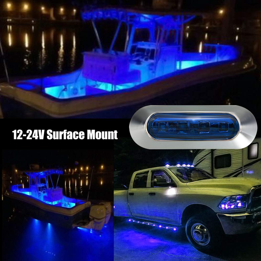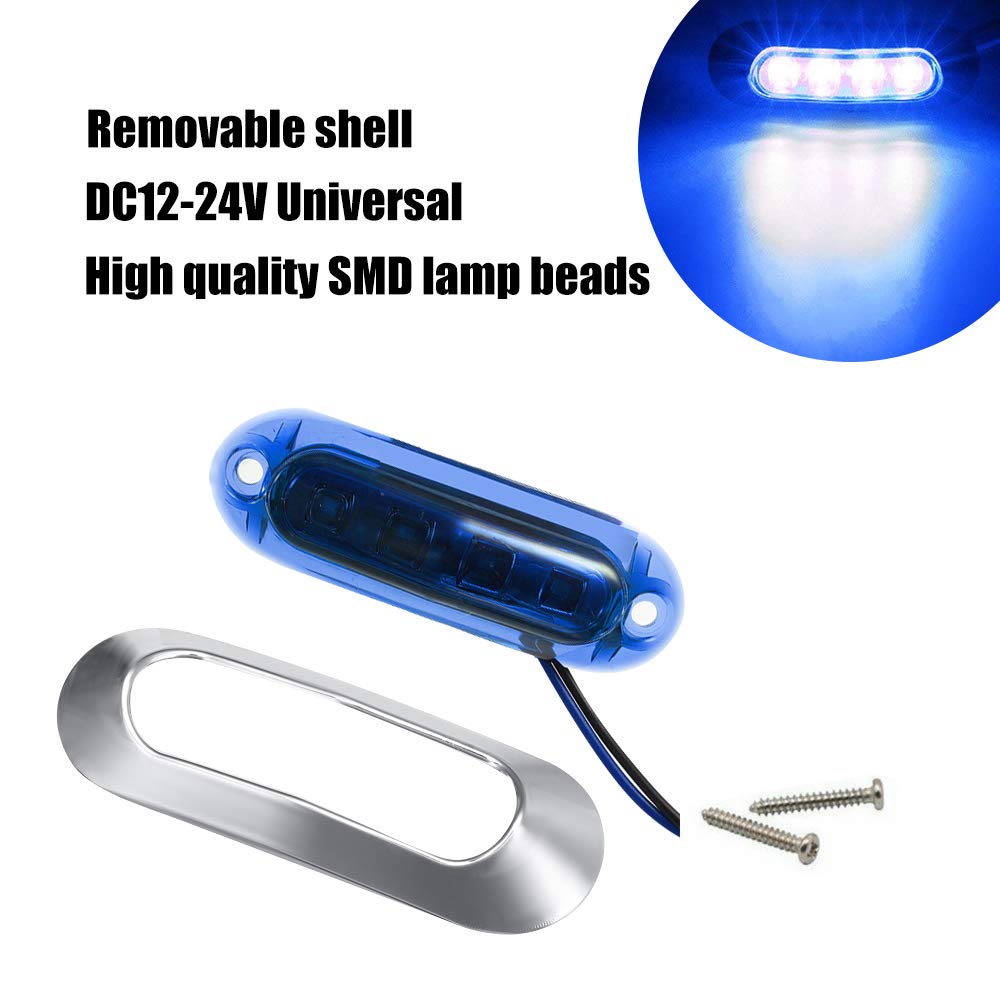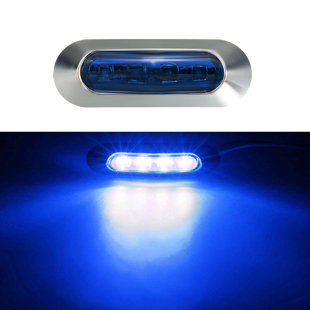 Alfu 10Pcs Blue Dc12V-24V 4 Led Side Marker Indicator Lights Lamp Front Rear Tail Clearance Lamp Interior Lights With Chrome Bez