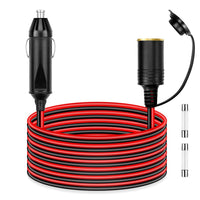 Q: What safety features does this extension cord include?A: The extension cord comes with a rubber cap on the female lighter socket to protect against dust and water when not in use. Additionally, it includes 2 spare fuses for replacement, ensuring safe operation.