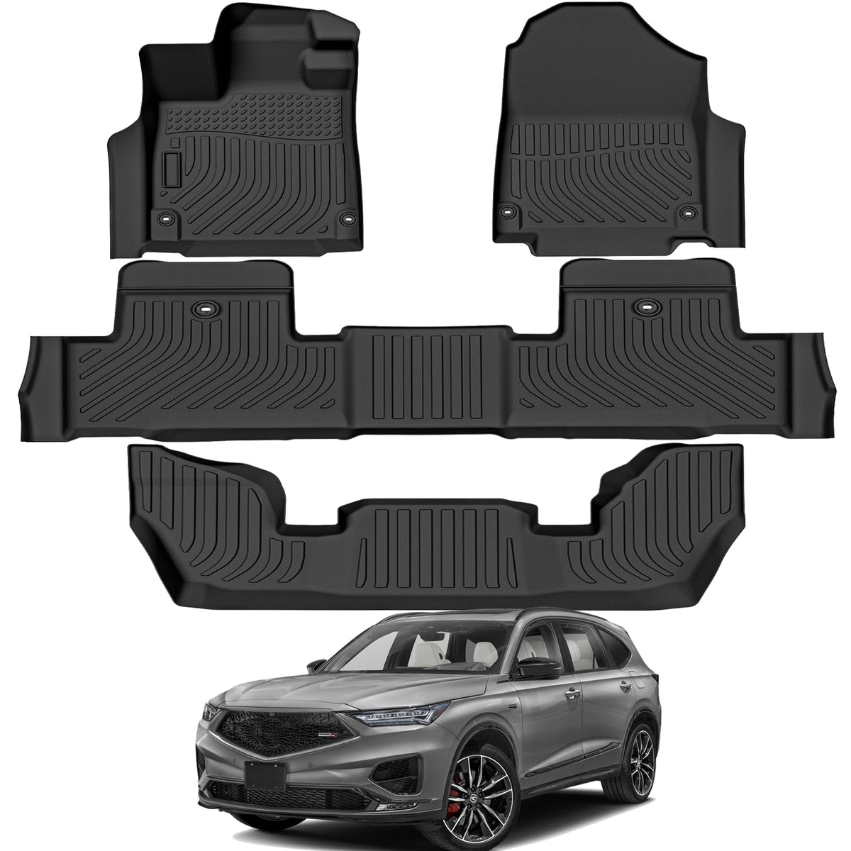 All Weather Rubber Car Floor Mats Compatible With 2022-2024 Acura Mdx, Fit For Acura Mdx Floor Mat, Full Set Includes 1St 2Nd An