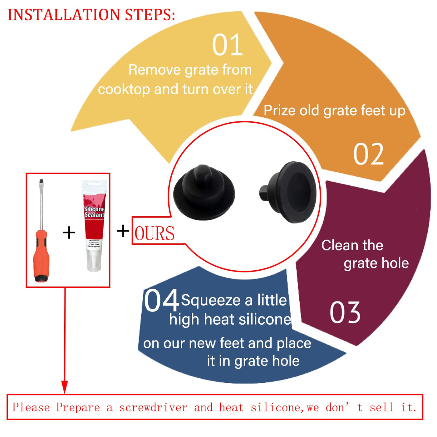 Heat-Resistant and Durable: Unlike standard rubber, our wolf grate feet are crafted to withstand high temperatures, ensuring durability and reliability in your kitchen.