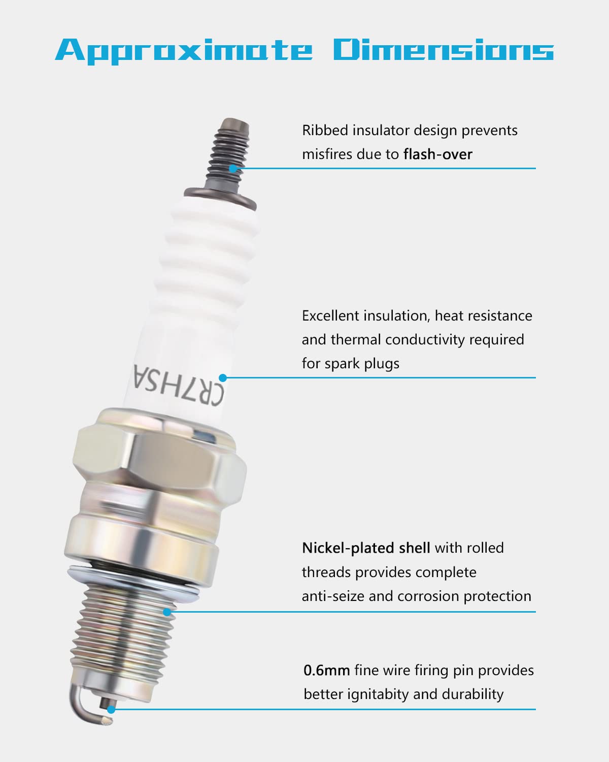 pls confirm The size of the product meets your requirements before you purchase Note:please allow 0.5-1 inch difference due to manual measurement.1 inch=2.54cm Feature: Small engine spark plugs feature a copper core electrode that provides increased Heat control while delivering good overall wear characteristics 100% brand new and high quality Replacement for: 50cc 70cc 90cc 110cc 125cc 140cc 150cc Pit Dirt Bike Motorcycle ATV Quad Scooter Moped Buggy Go Karts. A7TC Spark Plug compatible with: Replace number: 4549 CR7HSA A7RTC A7TC Replace XR50 XR70 XR80 XR100 CRF50 CRF70 CRF80 CRF100 Replace KAWASAKI KLX140 Replace YAMAHA TTR50 TTR125 TTR125L CR7HSA