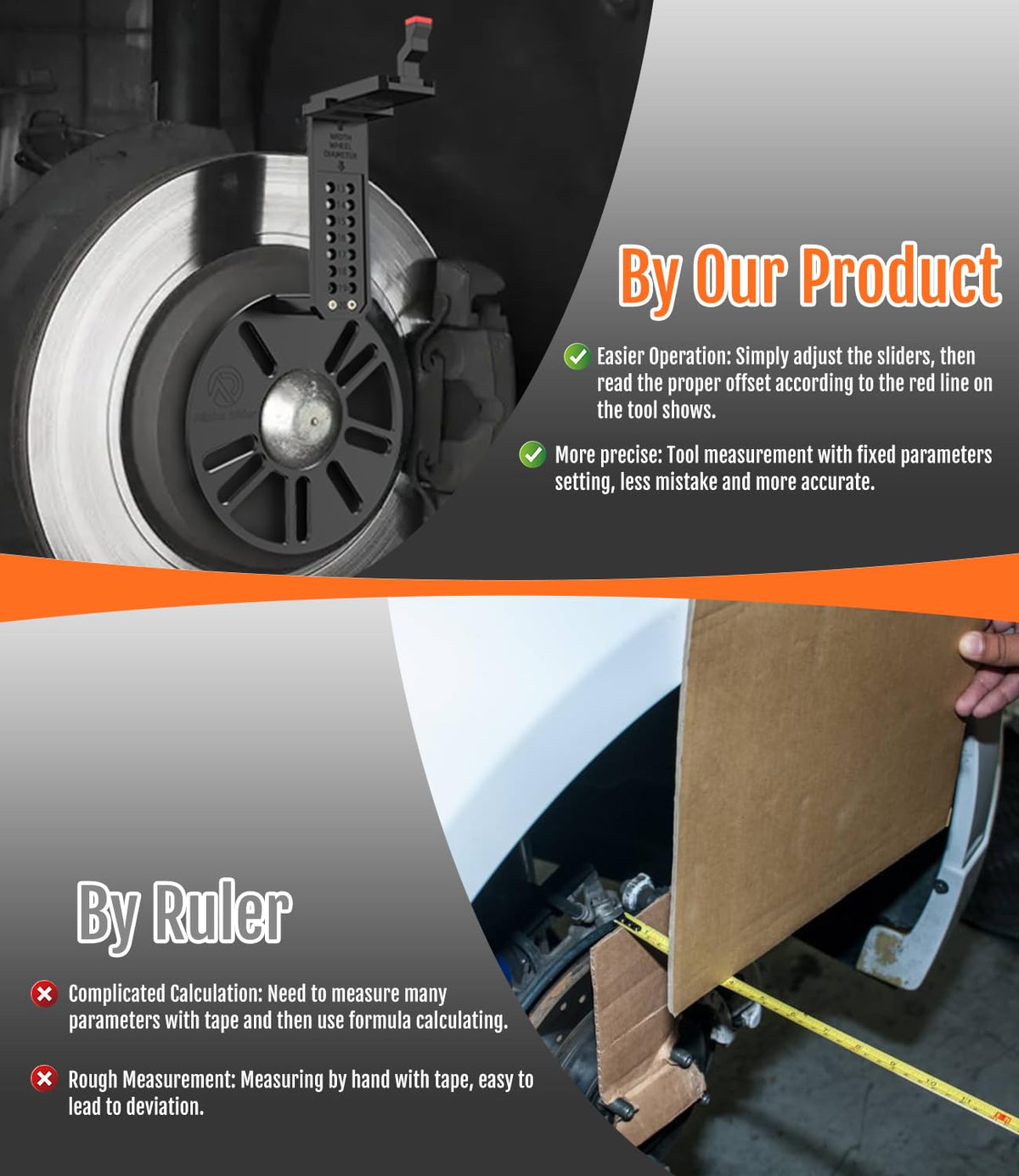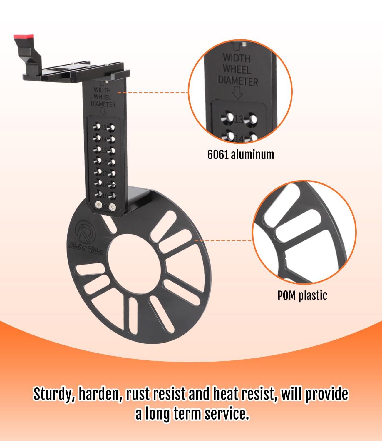 Q: What materials are used in the construction of this wheel offset tool?A: The tool is constructed from durable 6061 aluminum, POM plastic, and stainless steel, making it sturdy, rust-resistant, and heat-resistant for long-term use.