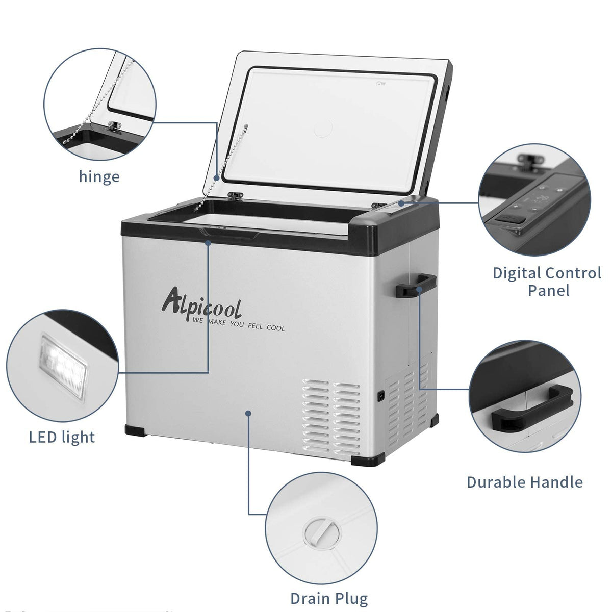 Alpicool C50 Portable Refrigerator 53 Quart(50 Liter) 12 Volt Car Freezer For Vehicle, Truck, Rv, Boat, Mini Fridge Freezer For Travel, Outdoor, Home -12/24V Dc And 110-240V Ac (Black And Silver)